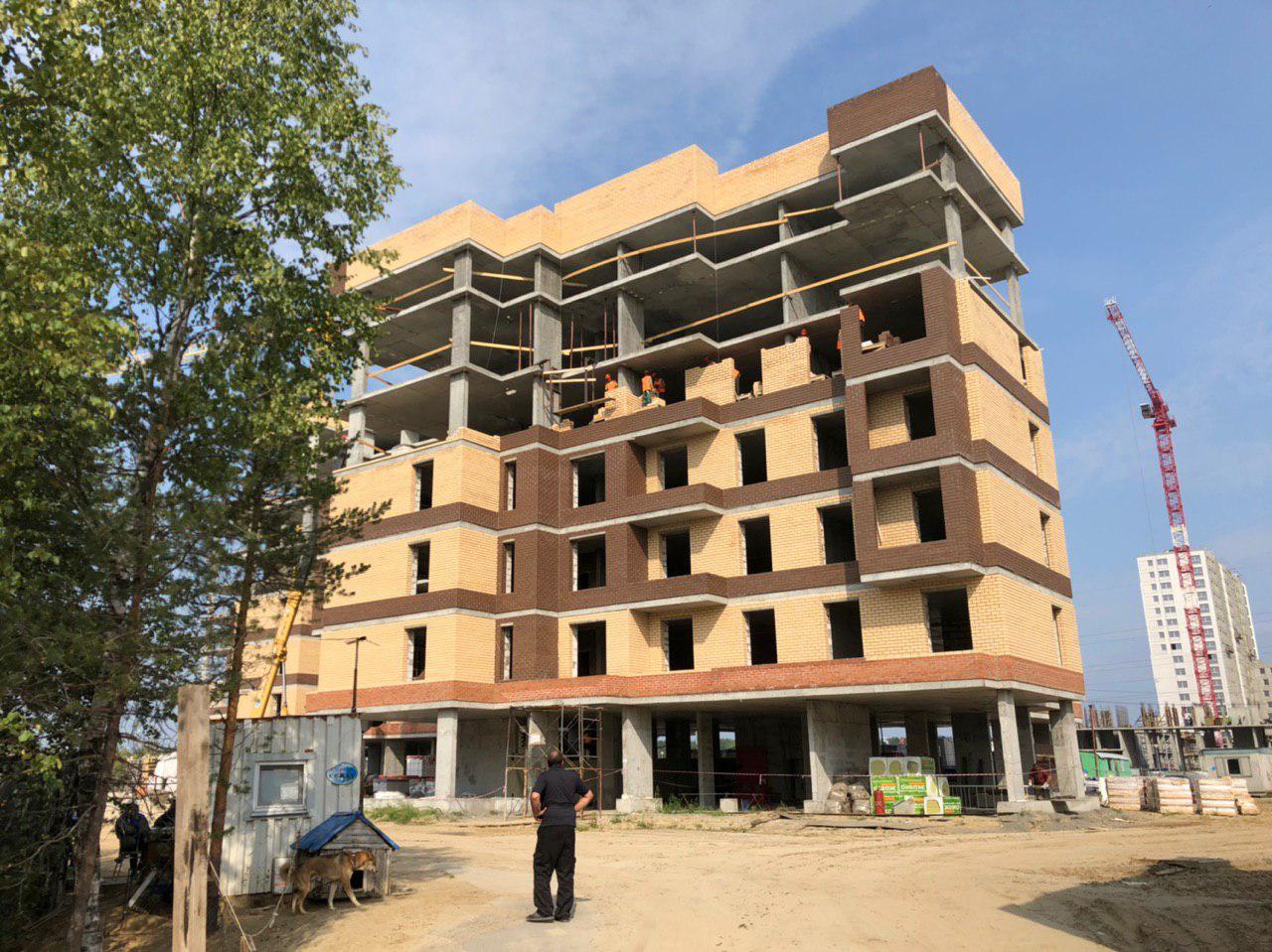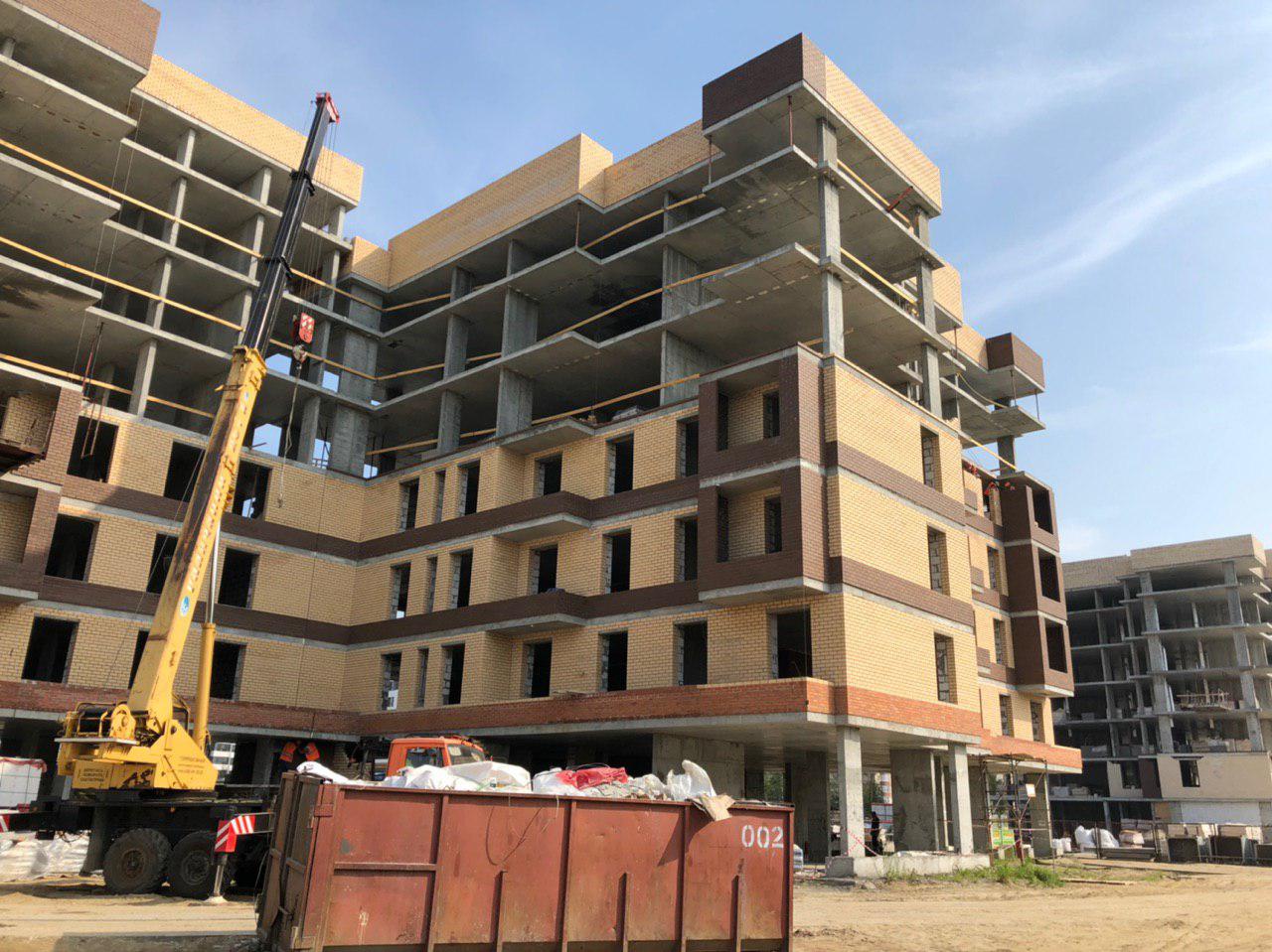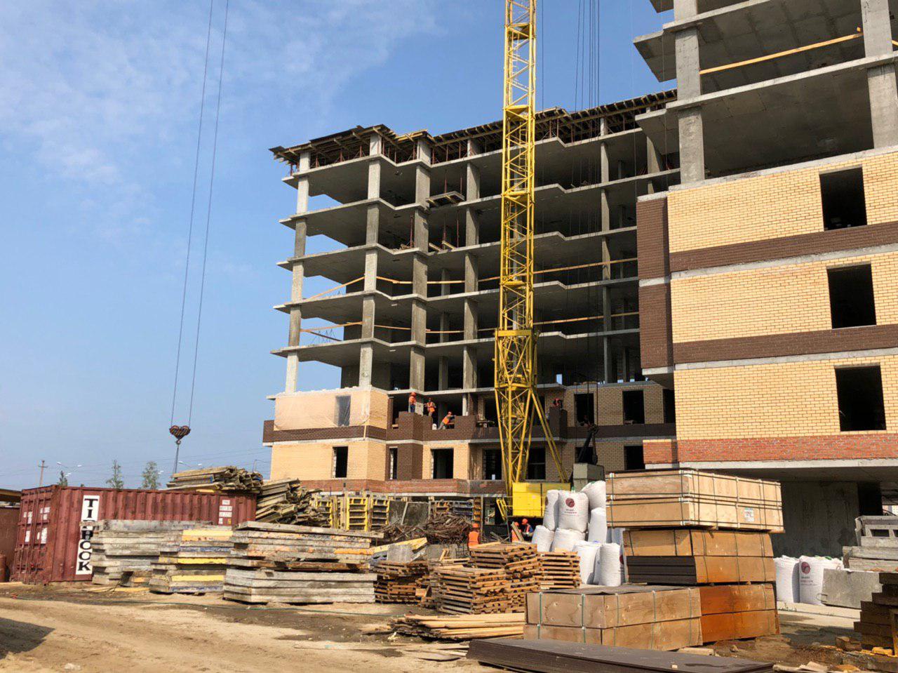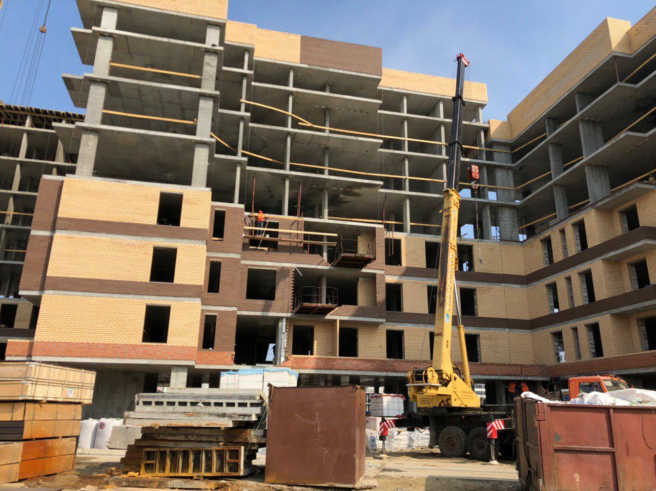 Ведутся работы по укладке ограждающих конструкций на 2,3,4, этажах из кирпича 6,7,8 этажных секций.