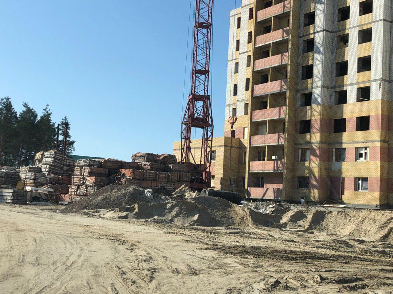 Ведется кладка ограждающих конструкций многоквартирного жилого дома и перегородок. Ведутся работы на кровле.
