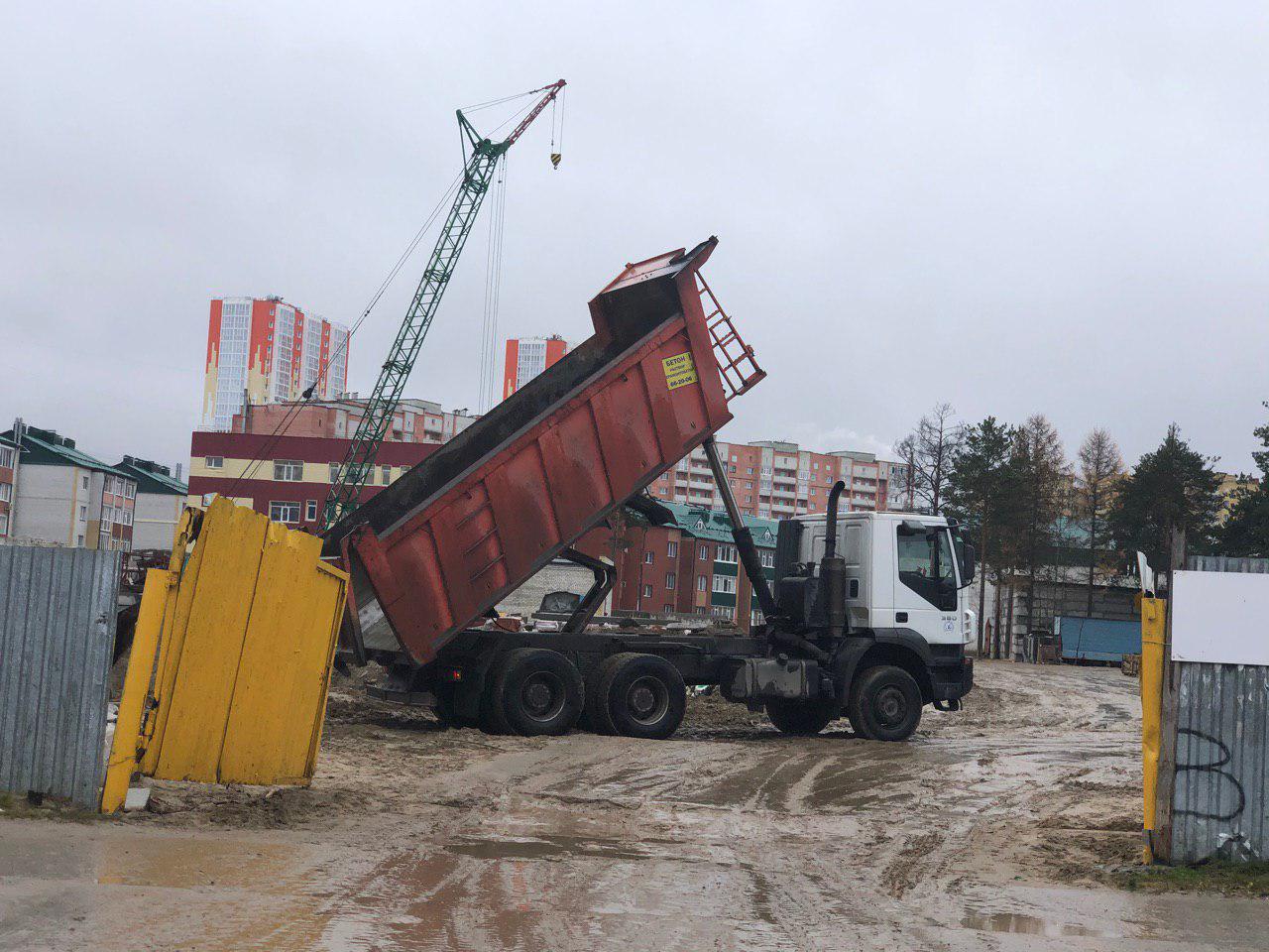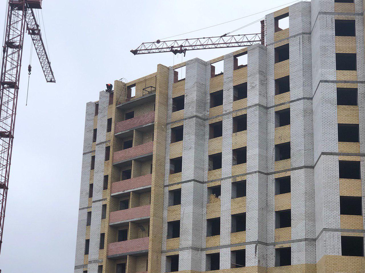 Ведется кладка ограждающих конструкций 9-го этажа секции 8 многоквартирного жилого дома и перегородок. Ведутся работы на кровле. Работают 2 кран, бульдозер, самосвал.