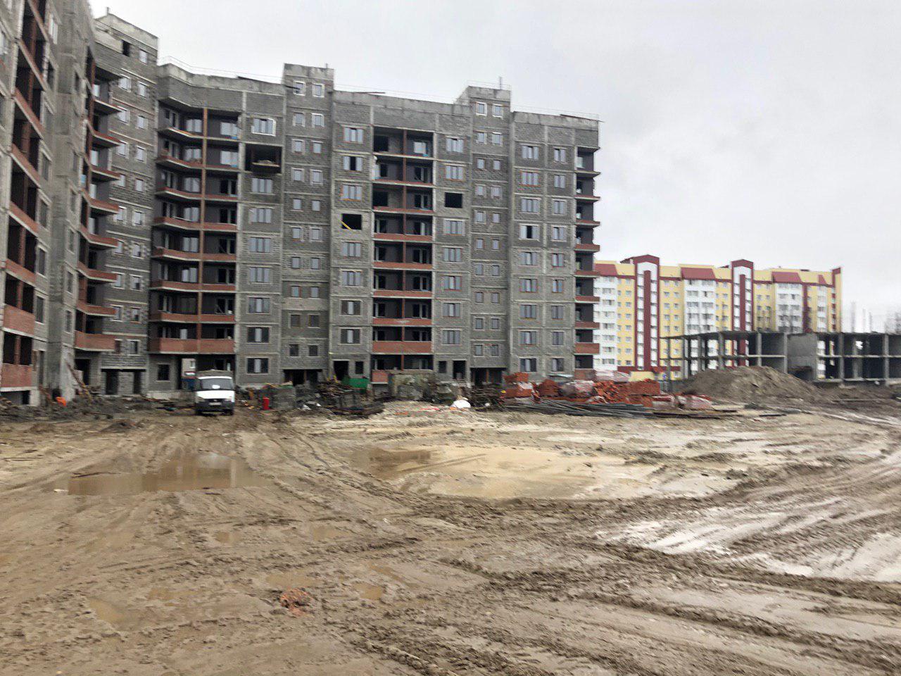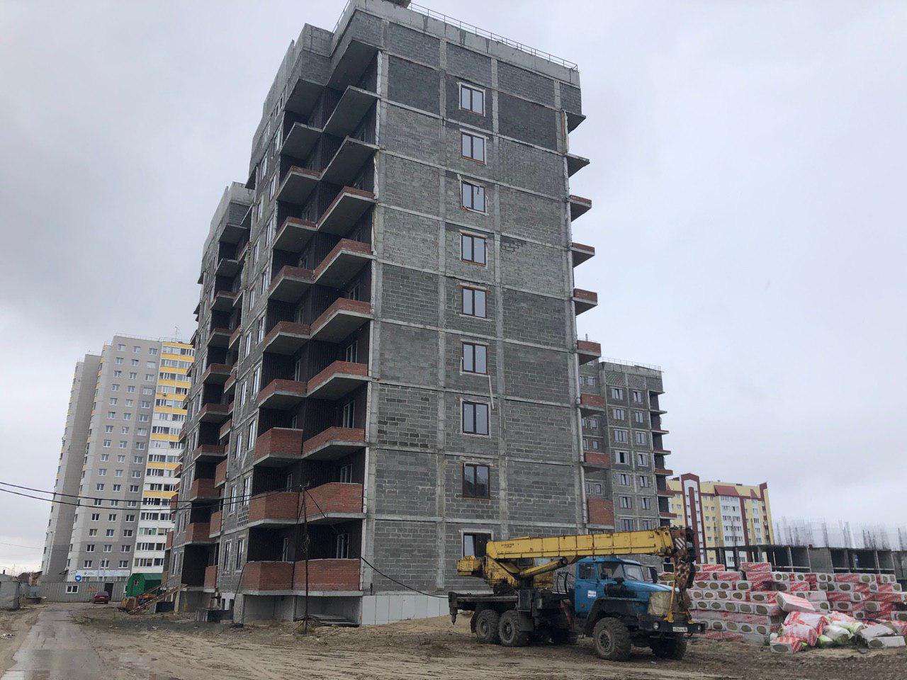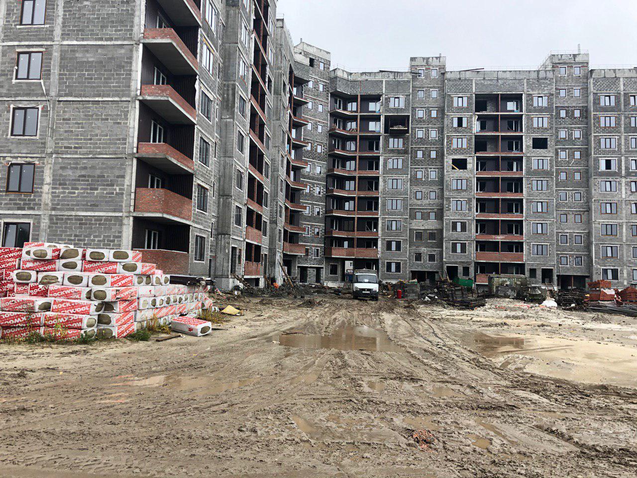 Закончены штукатурные работы в 1,2,3 подъезде. Ведется кладка ограждающих конструкций на 7 и 8 этаже. Завоз и установка тепловых камер (колодцев). Производится подъем строительное материала на этажи.