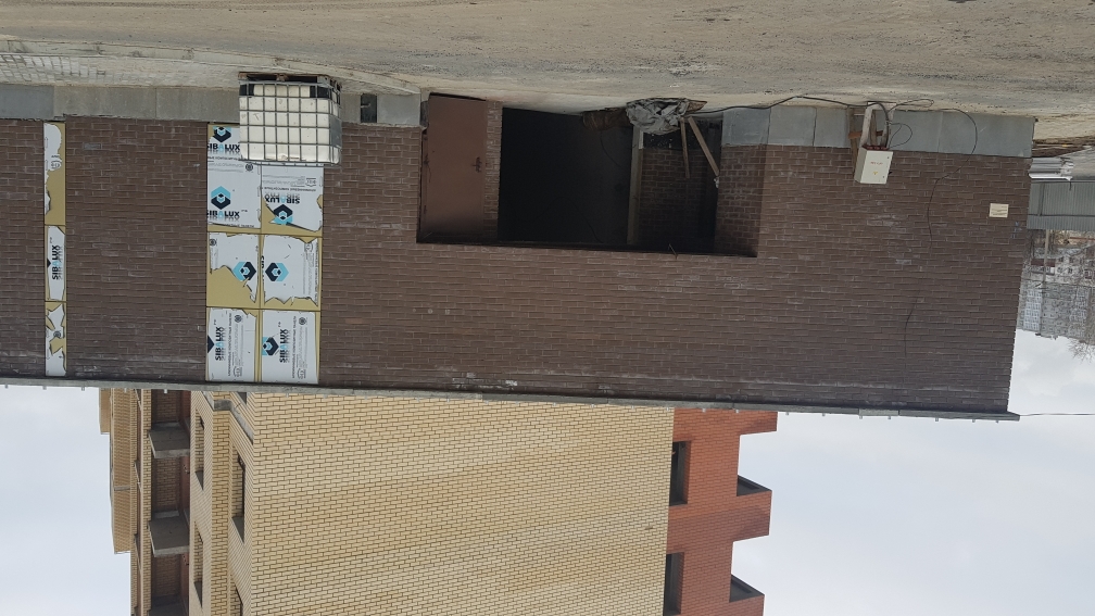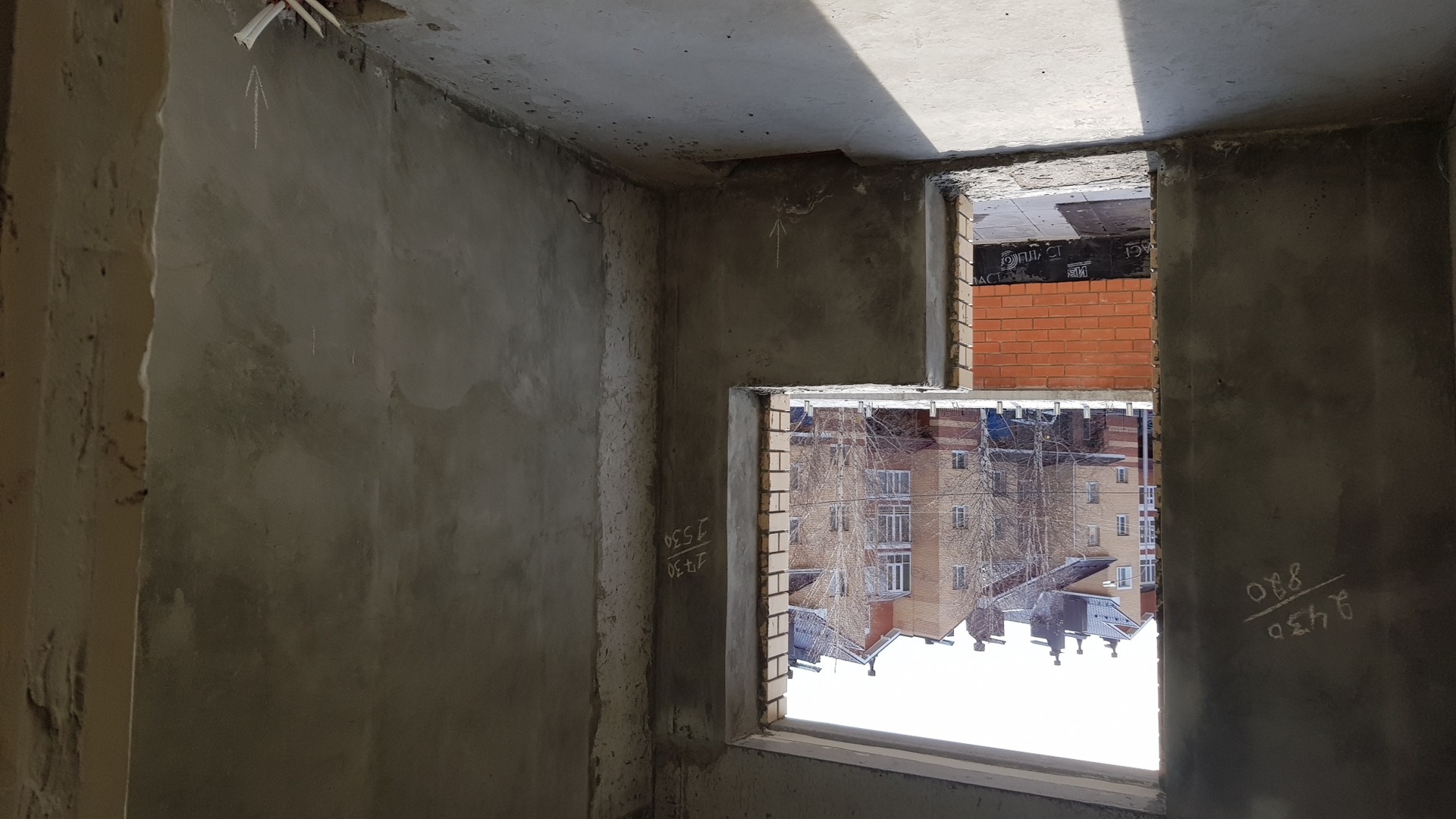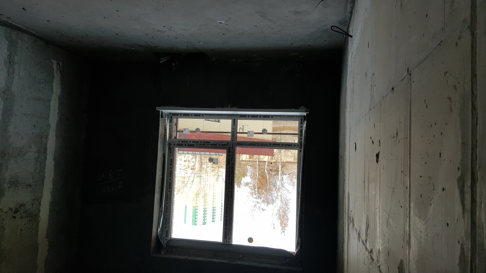 Ведется работа по остеклению оконных проемов, установке балконных рам.