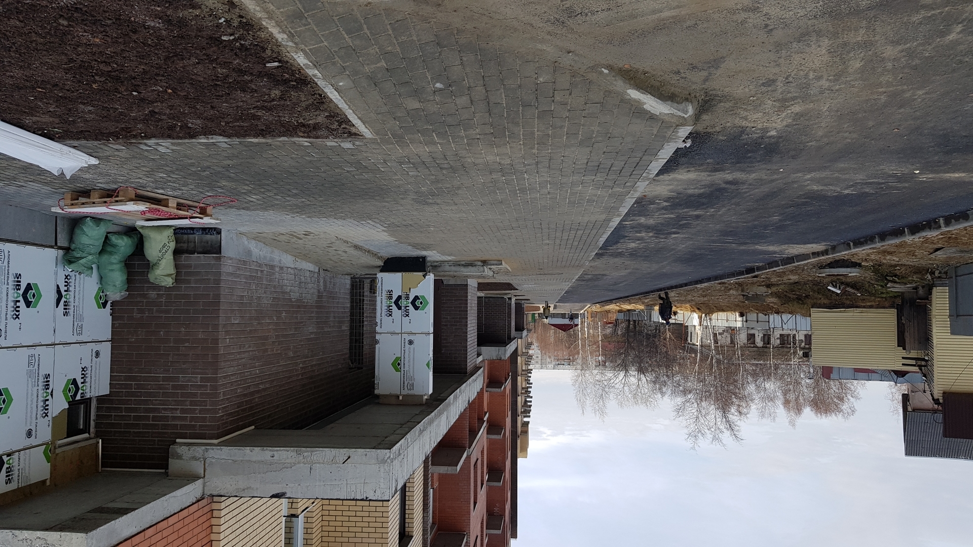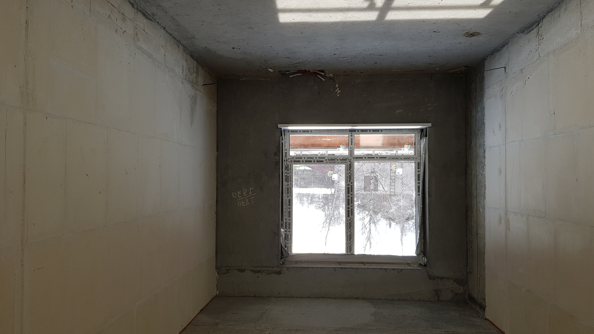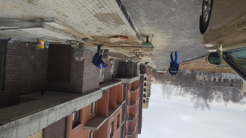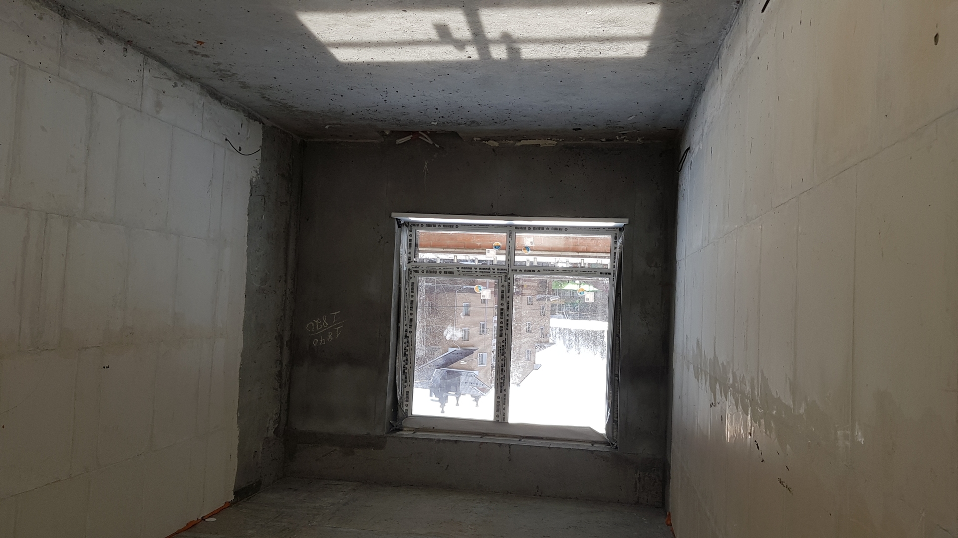 Ведется работа по остеклению оконных проемов, установке балконных рам.