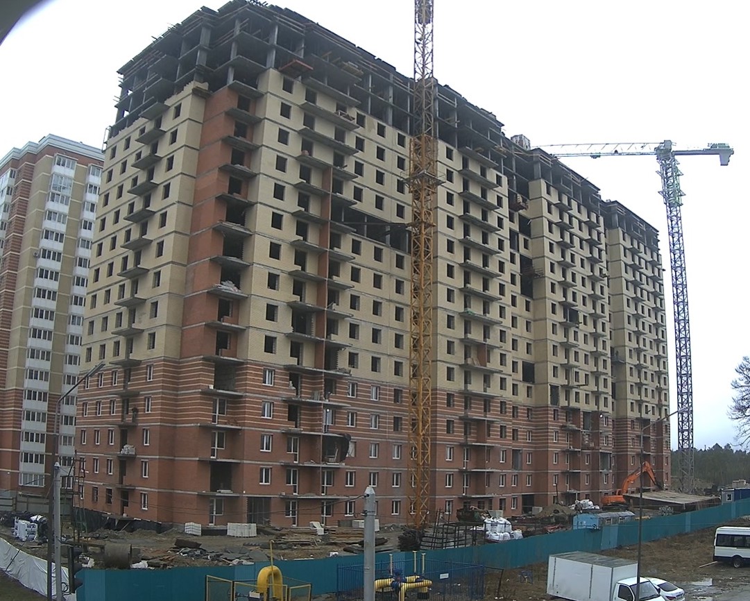 На строительной площадке ведутся строительно-монтажные работы.