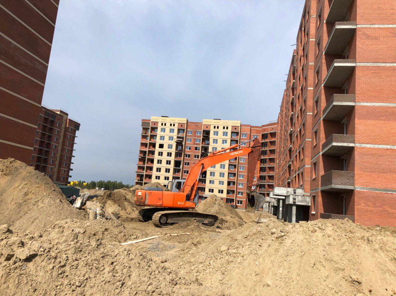 В настоящий момент ведутся земляные (подготовительные) работы для укладки наружных и внутренних инженерных сетей (горячего и холодного водоснабжения). Производится кладка пазогребневых плит для устройства внутренних перегородок внутри жилого дома. Проводятся работы по проводке электрических сетей внутри жилого дома. Работает экскаватор и погрузчик.