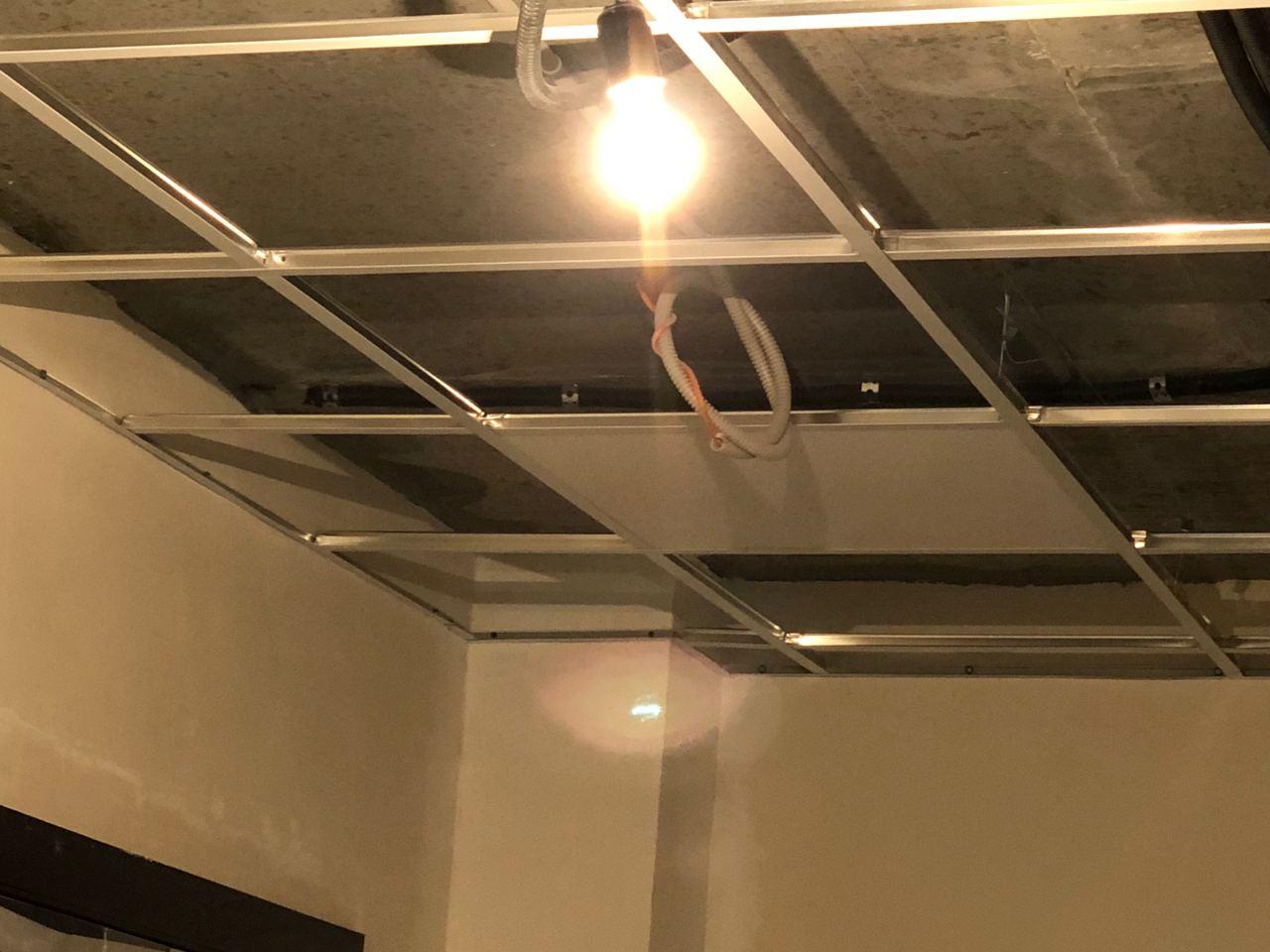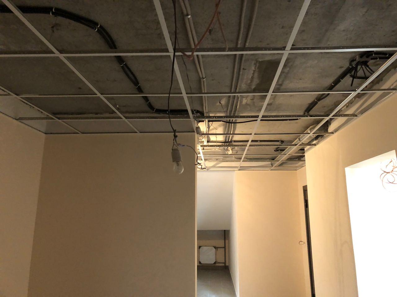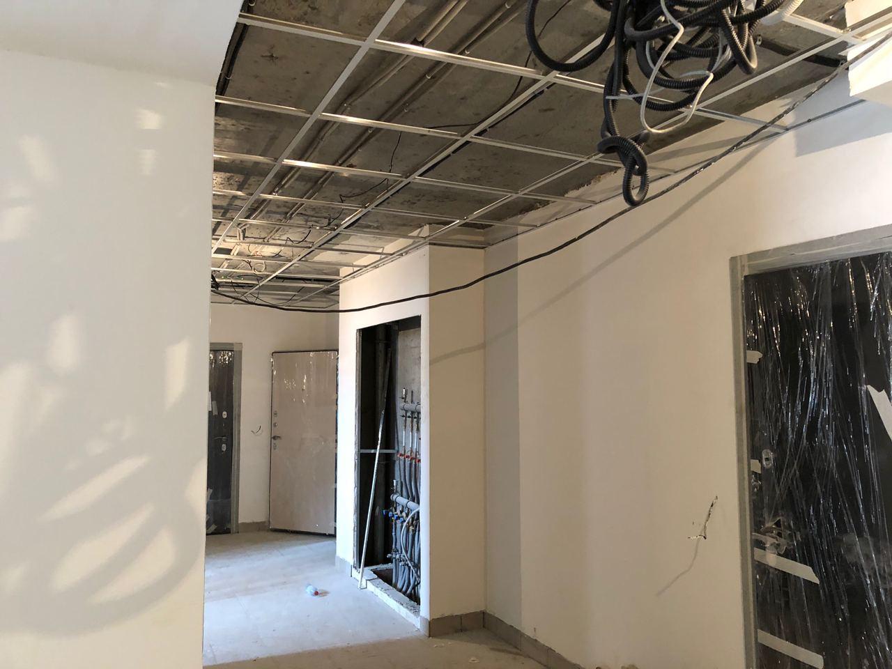 В 4 секции ведется укладка плитки, монтаж потолков.