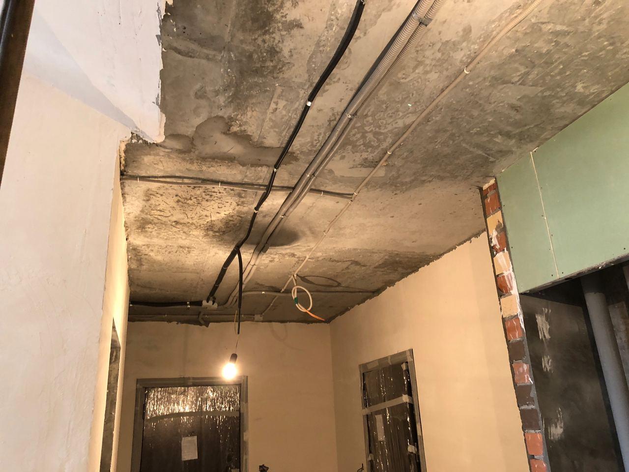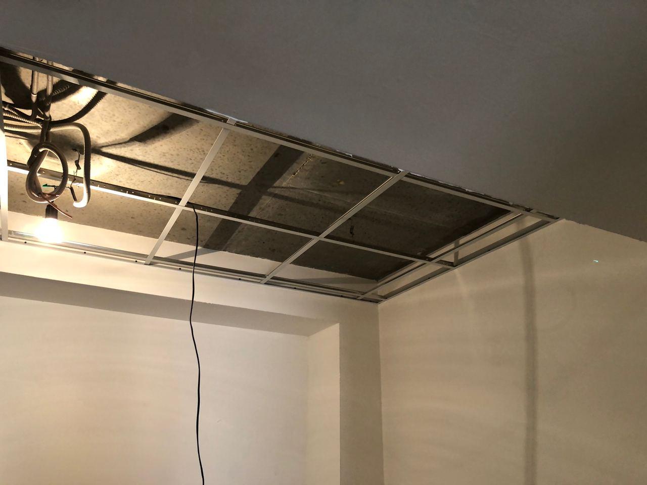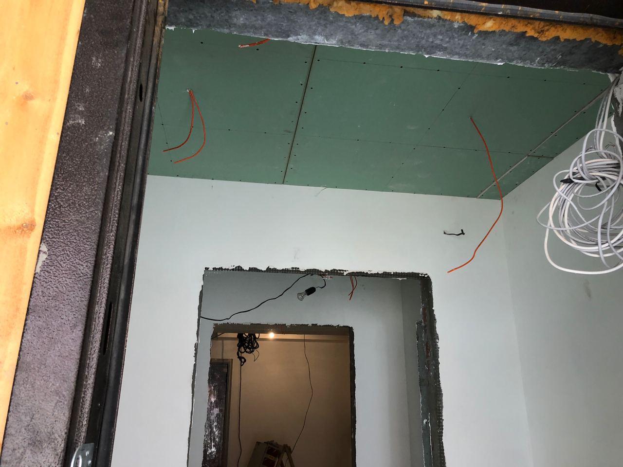 В 4 секции ведется укладка плитки, монтаж потолков.