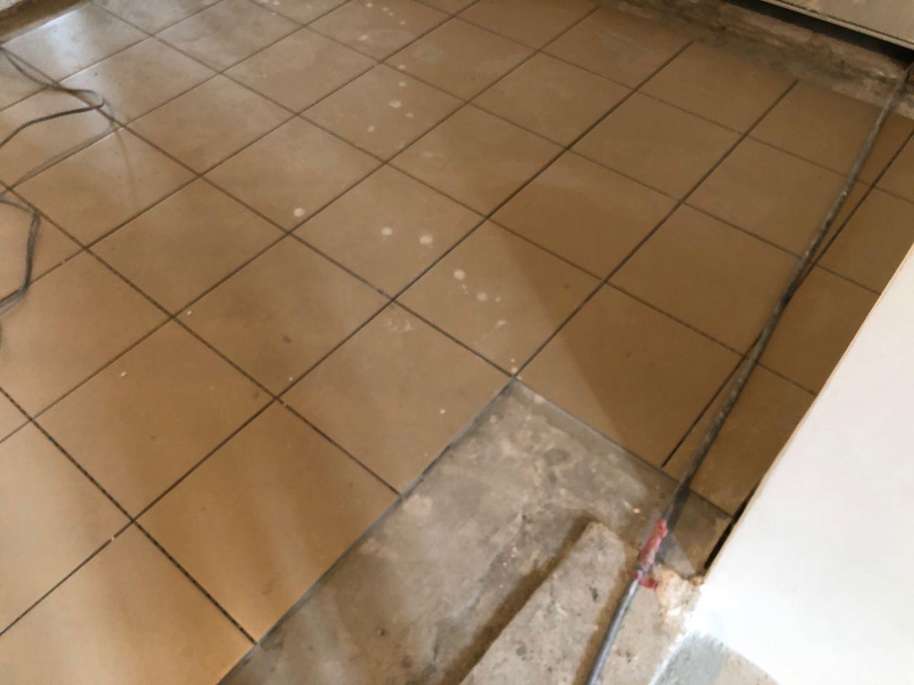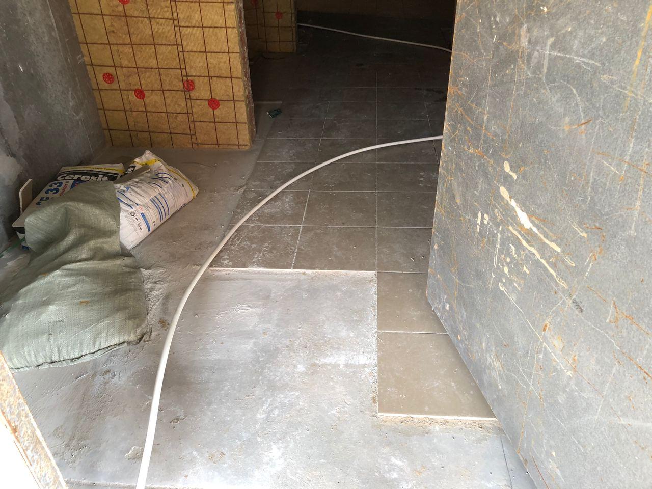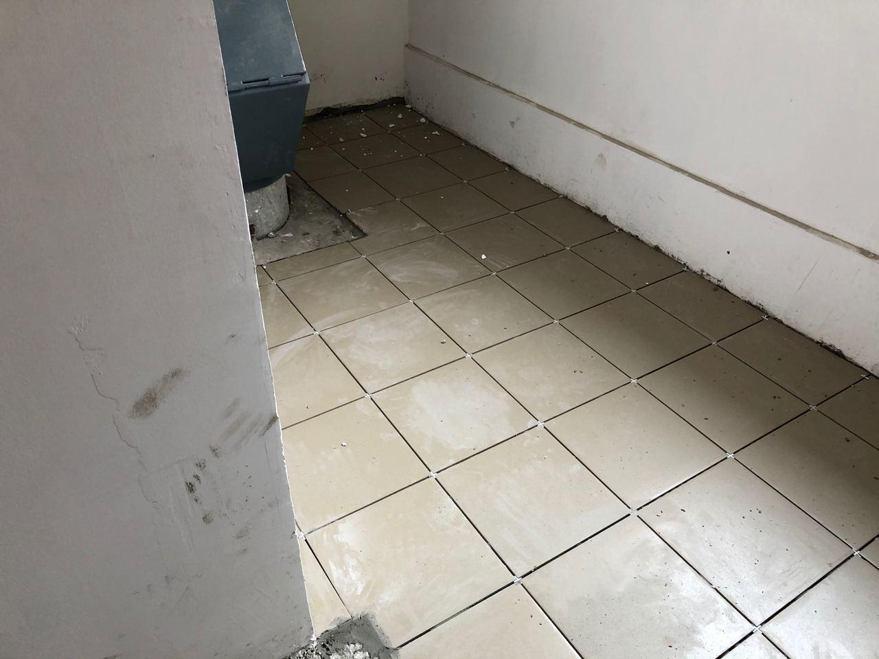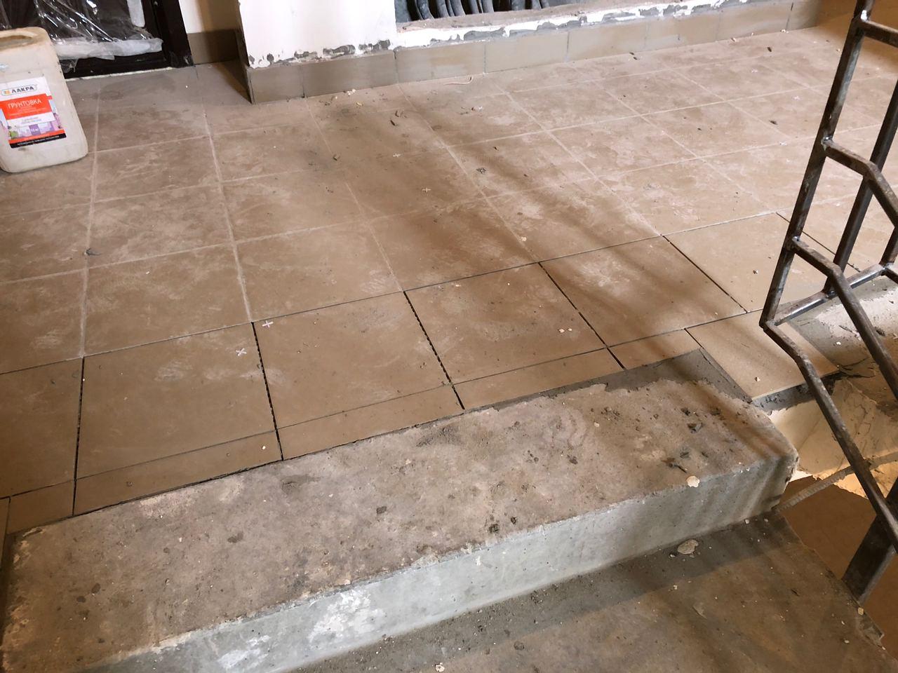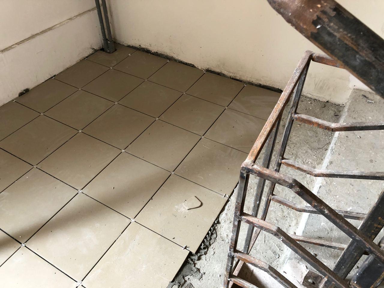 В 5 секции ведется укладка плитки.