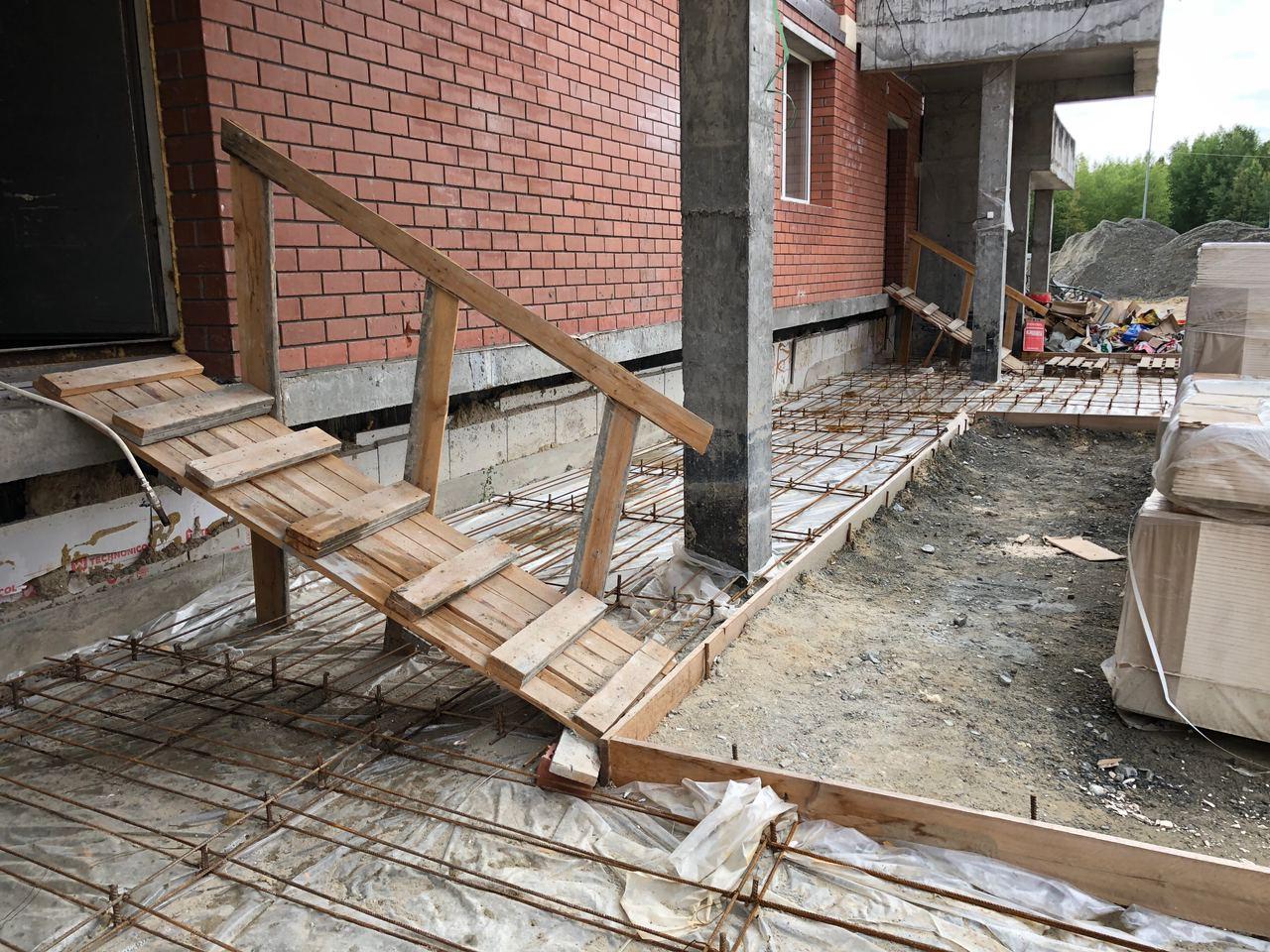 В 1-3 секциях работы не ведутся. Идет работа по устройству крылец 2-3 секции.