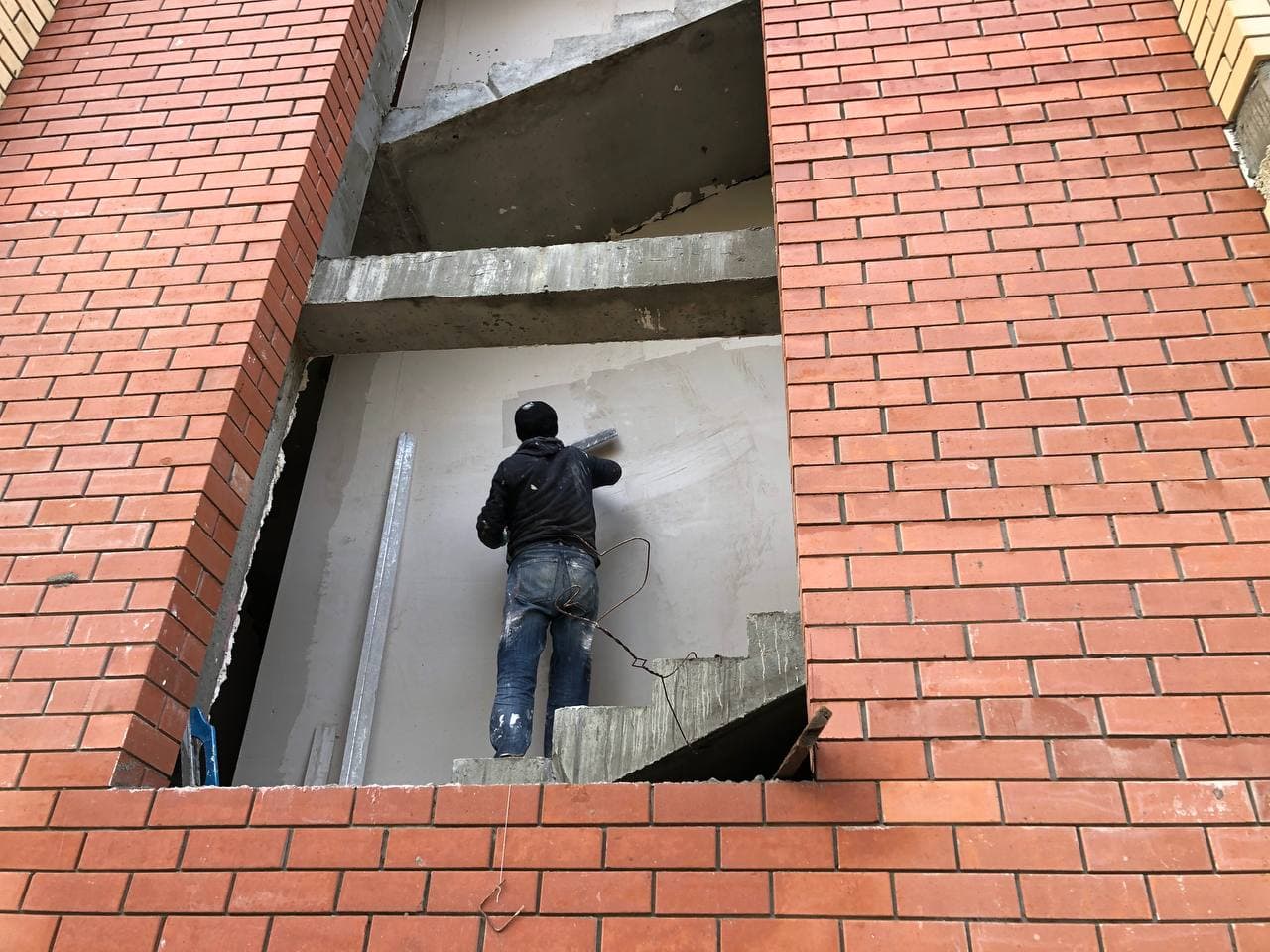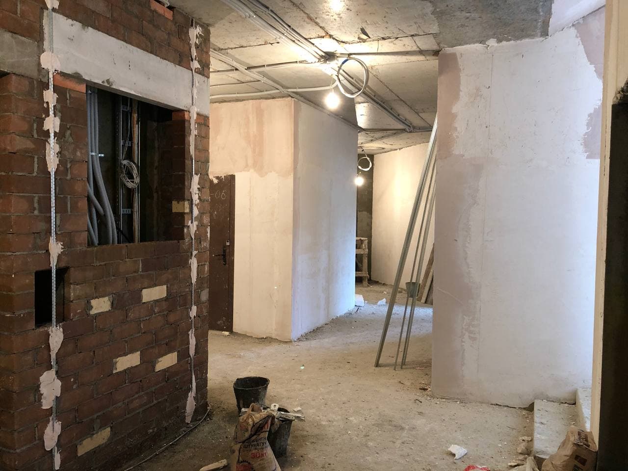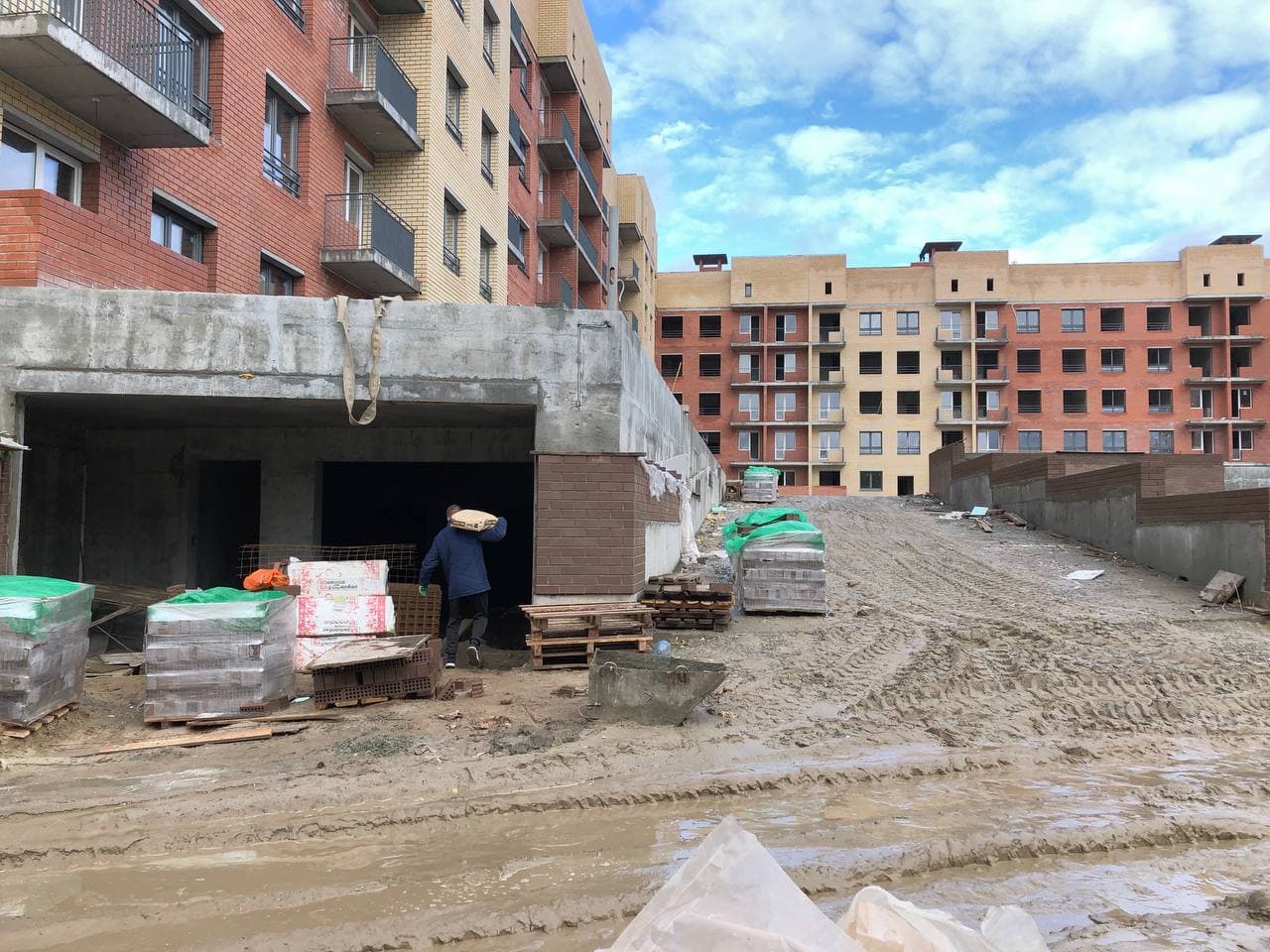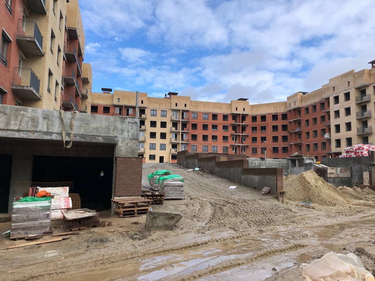 Ведется устройство перегородок из пазогребневой плиты. Монтаж внутренней электропроводки. Устройство монолитных входных групп и плиты паркинга. Подготовка песчаного основания под полы первого этажа. Ведутся работы по устройству полусухой стяжки на верхних этажах (чердак) Гидроизоляция паркинга. Штукатурка колонн в паркинге, штукатурка МОП. Монтаж воздуховодов вентиляции. Монтаж оконных конструкций. Монтаж защитных решеток на окна. Ведутся кровельные и фасадные работы. Монтаж стояков канализации и ХГВС. Установка радиаторов отопления. Проводятся работы по устройству кровельного пирога. Ведутся работы по реконструкции наружных сетей. Монтаж слаботочных сетей. Общестроительные работы. Ведутся работы по облицовке кирпичом стен монолитного паркинга и гаражей.