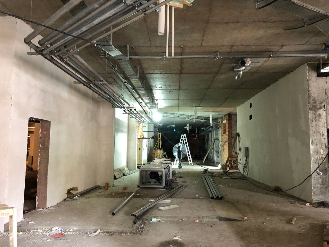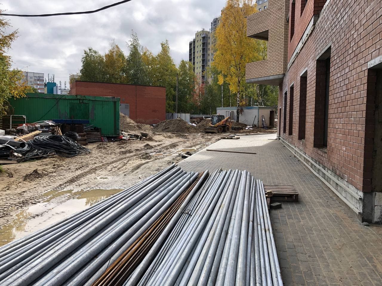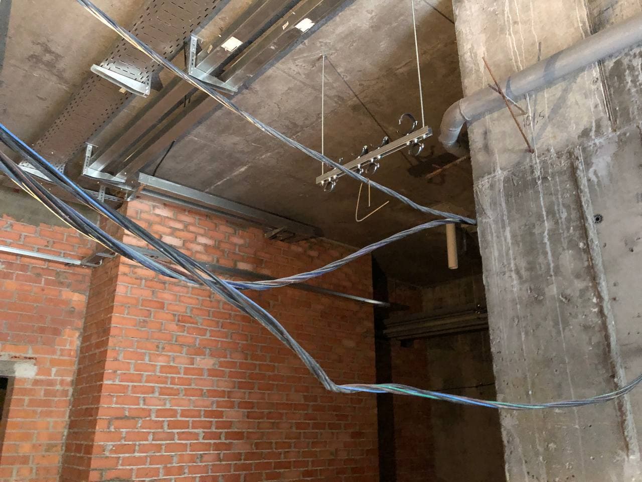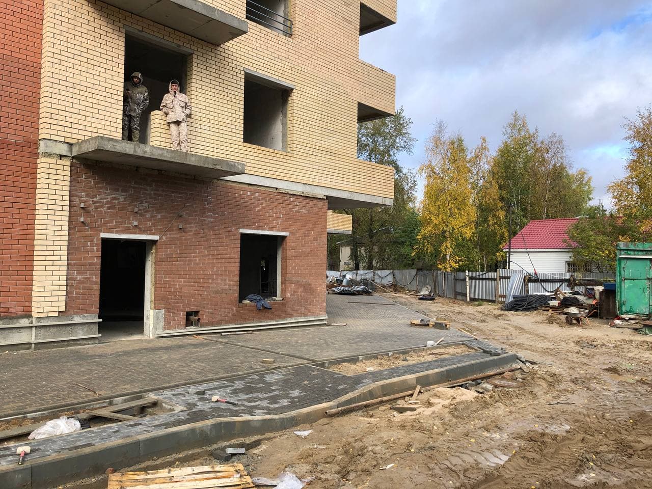 Ведется устройство перегородок из пазогребневой плиты. Монтаж внутренней электропроводки. Устройство монолитных входных групп и плиты паркинга. Подготовка песчаного основания под полы первого этажа. Ведутся работы по устройству полусухой стяжки на верхних этажах (чердак) Гидроизоляция паркинга. Штукатурка колонн в паркинге, штукатурка МОП. Монтаж воздуховодов вентиляции. Монтаж оконных конструкций. Монтаж защитных решеток на окна. Ведутся кровельные и фасадные работы. Монтаж стояков канализации и ХГВС. Установка радиаторов отопления. Проводятся работы по устройству кровельного пирога. Ведутся работы по реконструкции наружных сетей. Монтаж слаботочных сетей. Общестроительные работы. Ведутся работы по облицовке кирпичом стен монолитного паркинга и гаражей.
