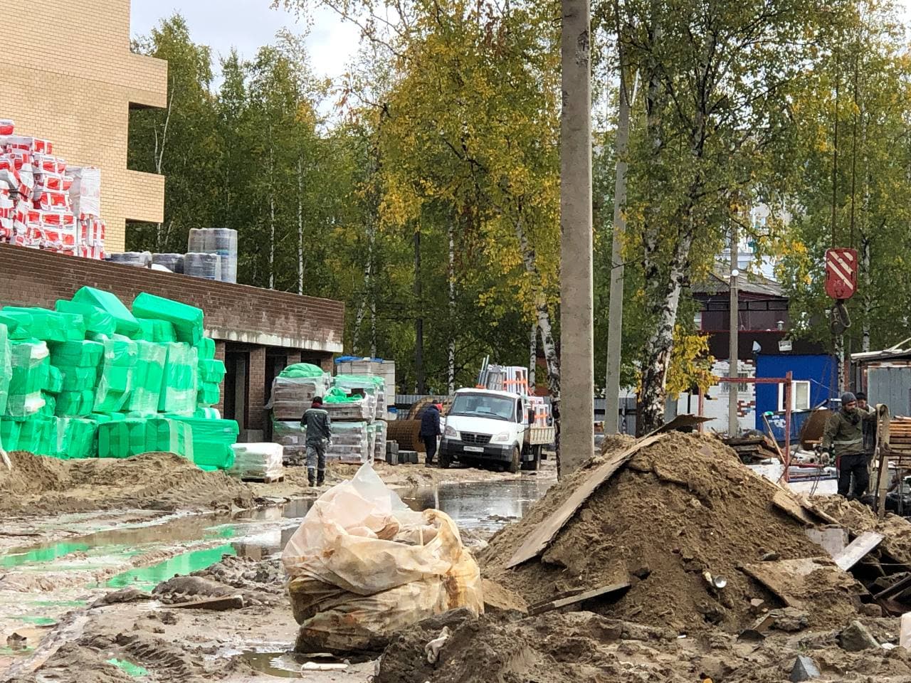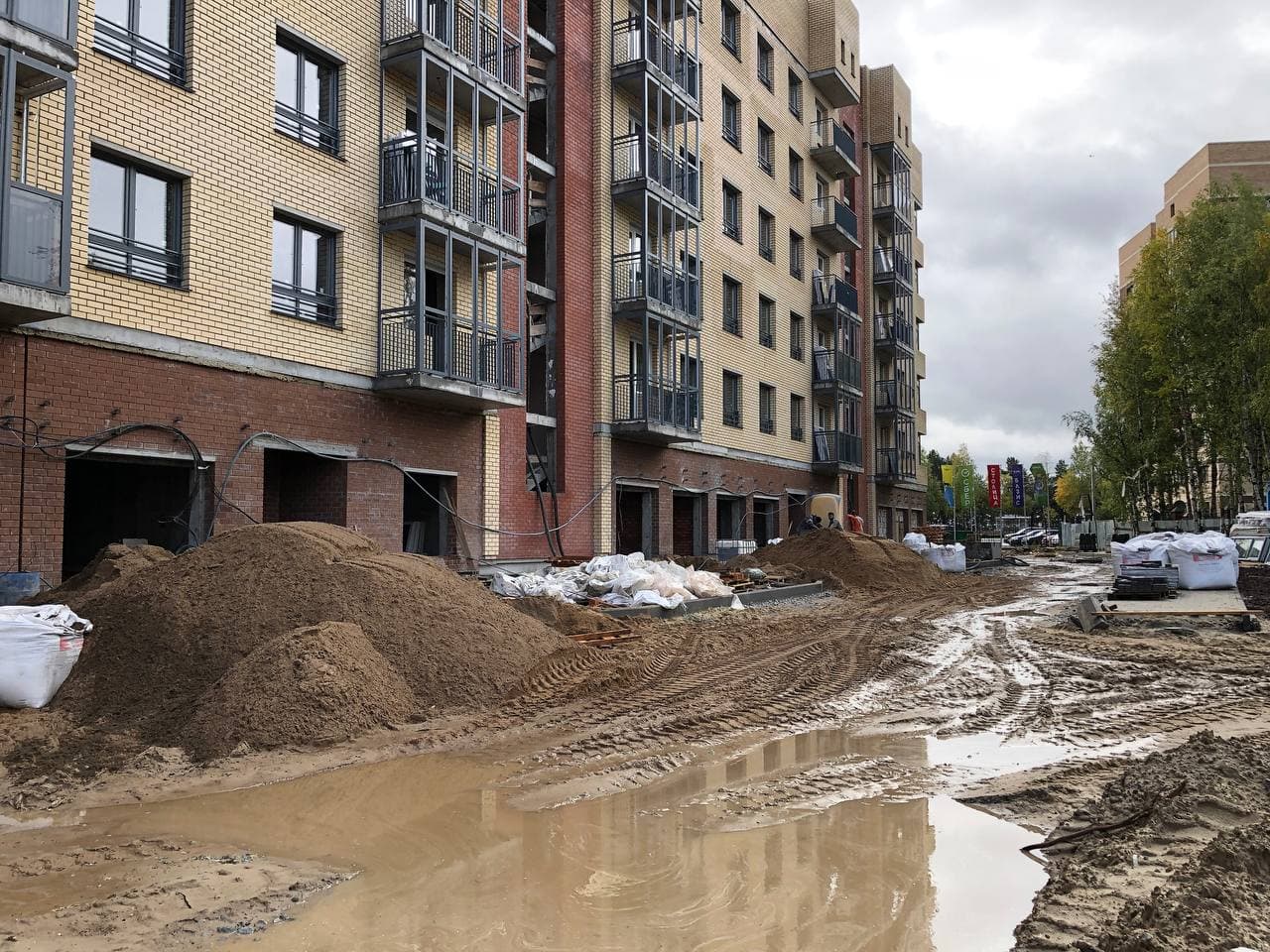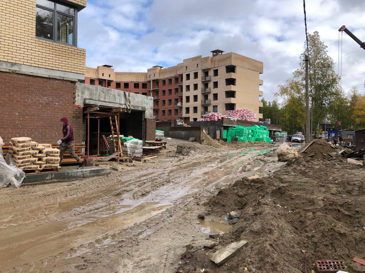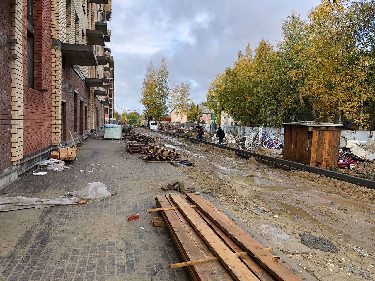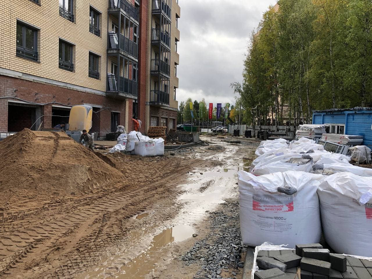 Выполняются работы по благоустройству территории, кладка тротуарной плитки, подготовка под асфальтирование проездов.
