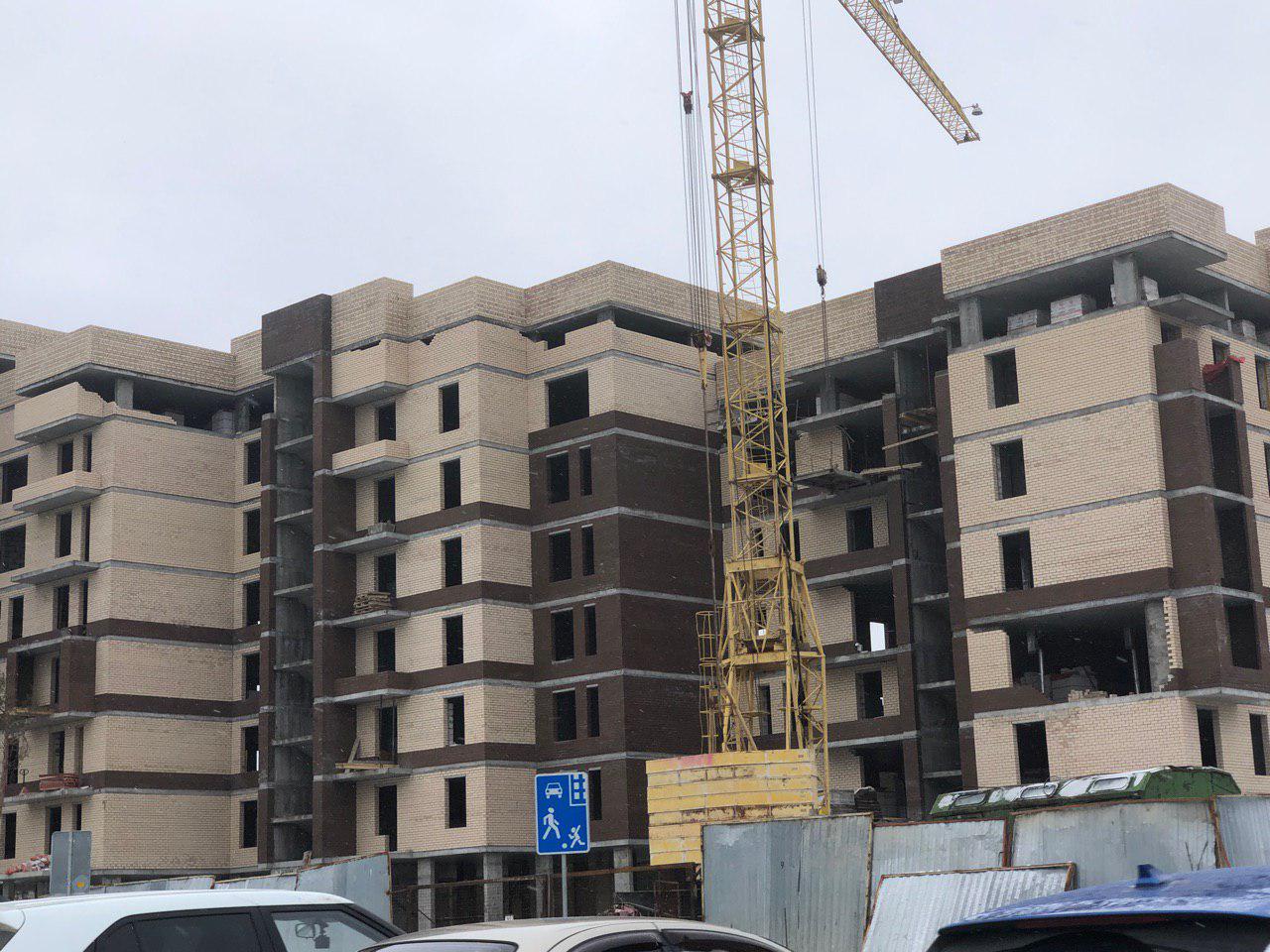 Ведутся работы по укладке ограждающих конструкций 6 этажной секции.