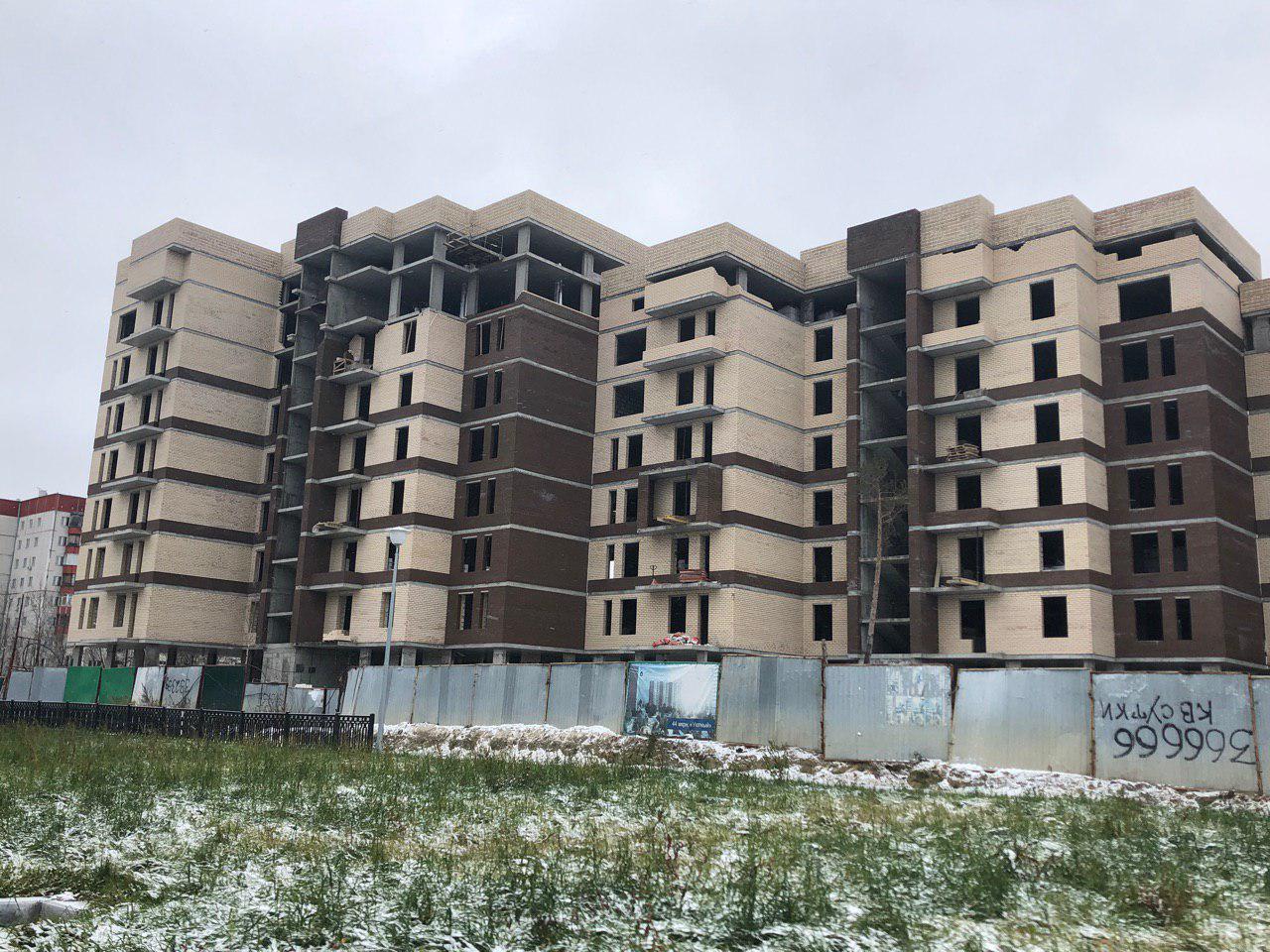 Ведутся работы по укладке ограждающих конструкций в 7 этажной секции.
