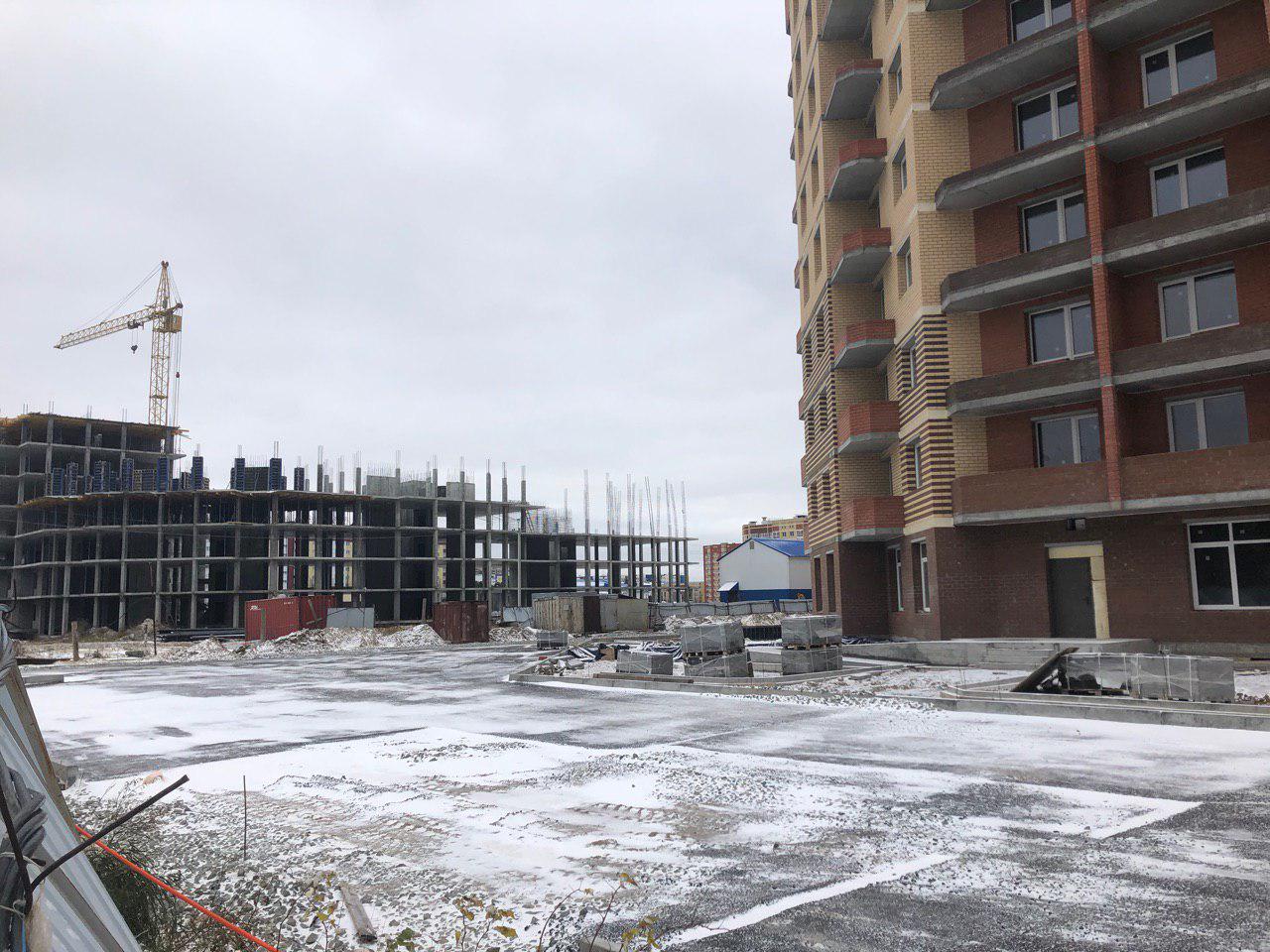 5 человек ведут работы по благоустройству прилегающей территории. Установка бордюров. Ведутся работы по отсыпке гравием тротуарных дорожек. Произведено асфальтирование проезда внутри двора.