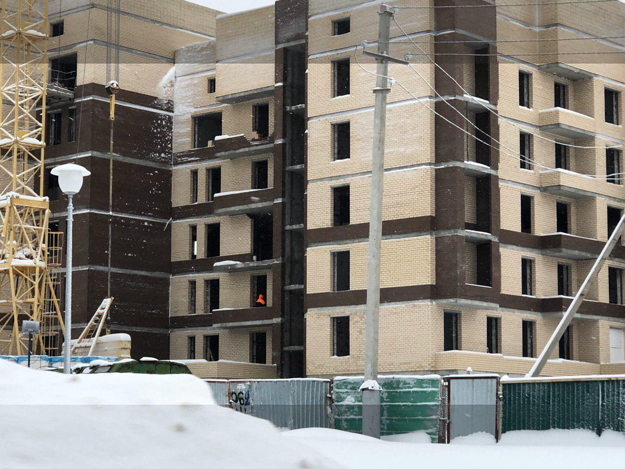 Ведутся работы по укладке ограждающих конструкций 6 этажной секции.