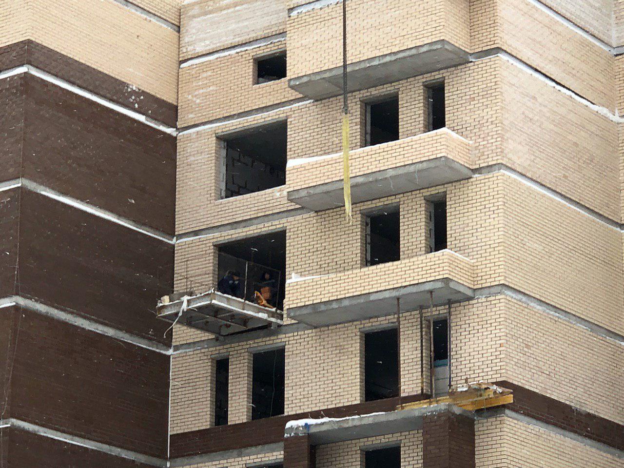 Ведутся работы по укладке ограждающих конструкций в 7 этажной секции.