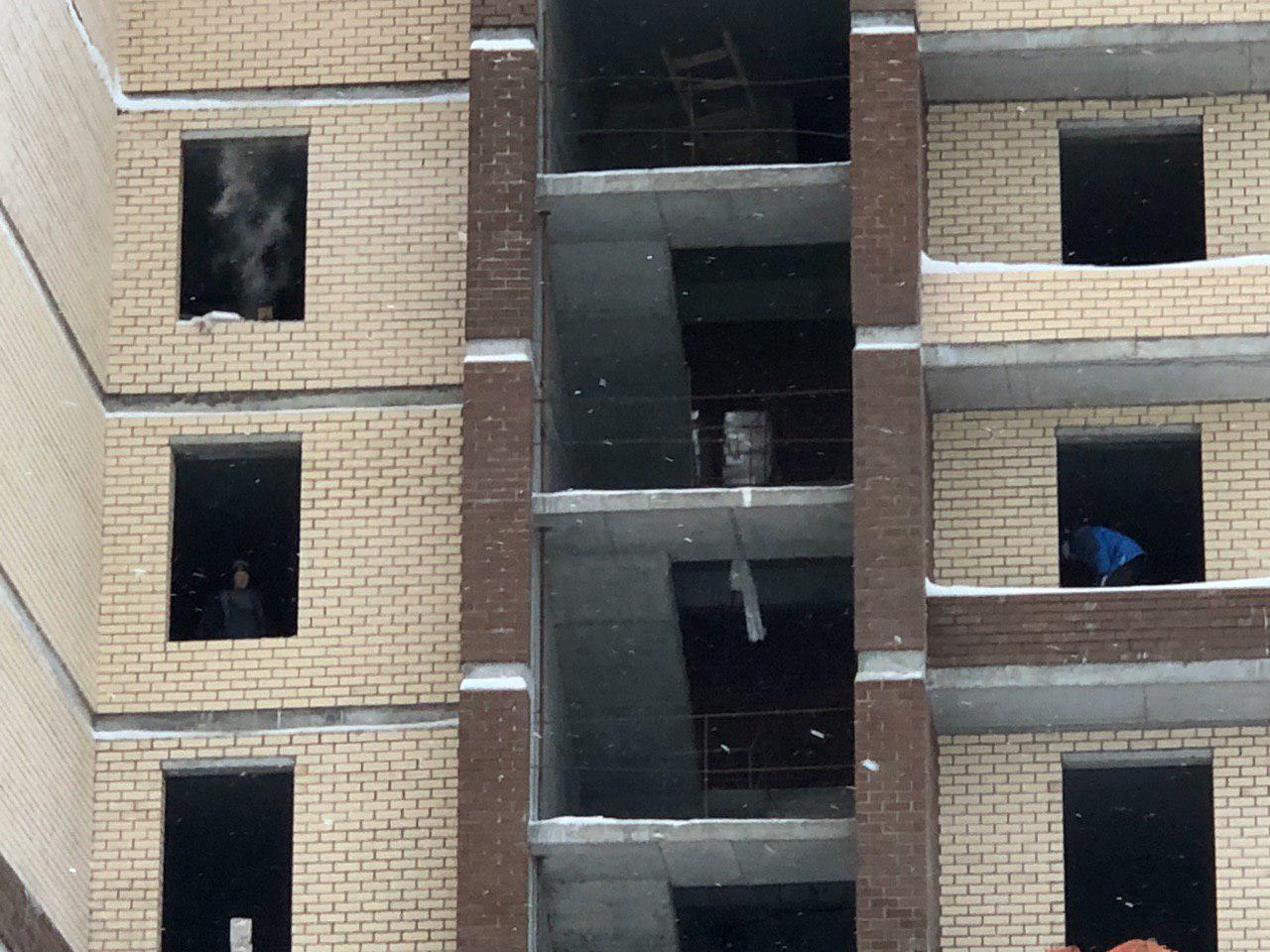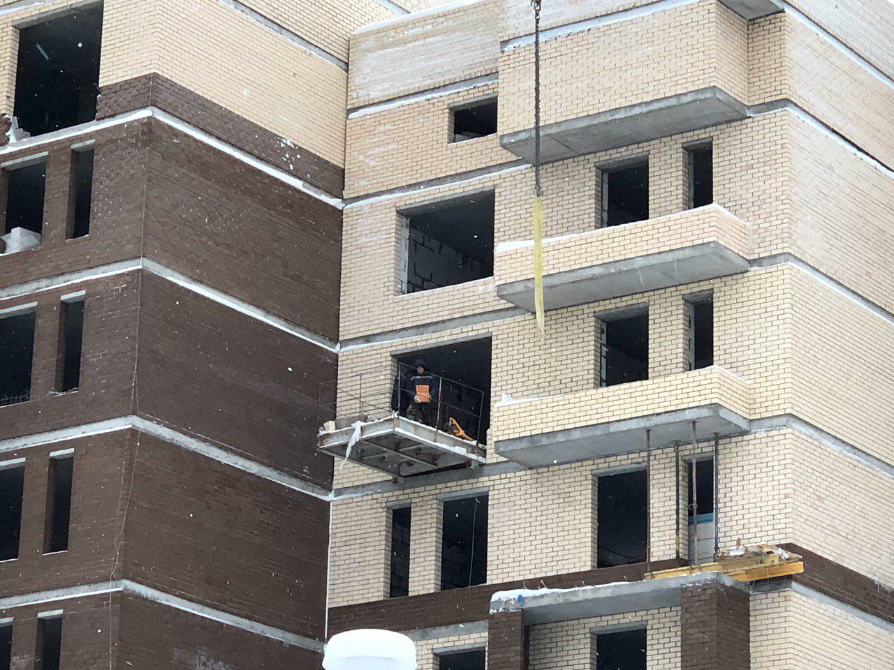 Производятся работы по укладке ограждающих конструкций 8 этажной секции.