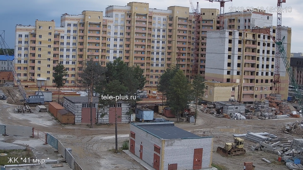Ведется кладка ограждающих конструкций 9-го этажа секции 8 многоквартирного жилого дома и перегородок. Ведутся работы на кровле. Работают 3 крана, бульдозер.