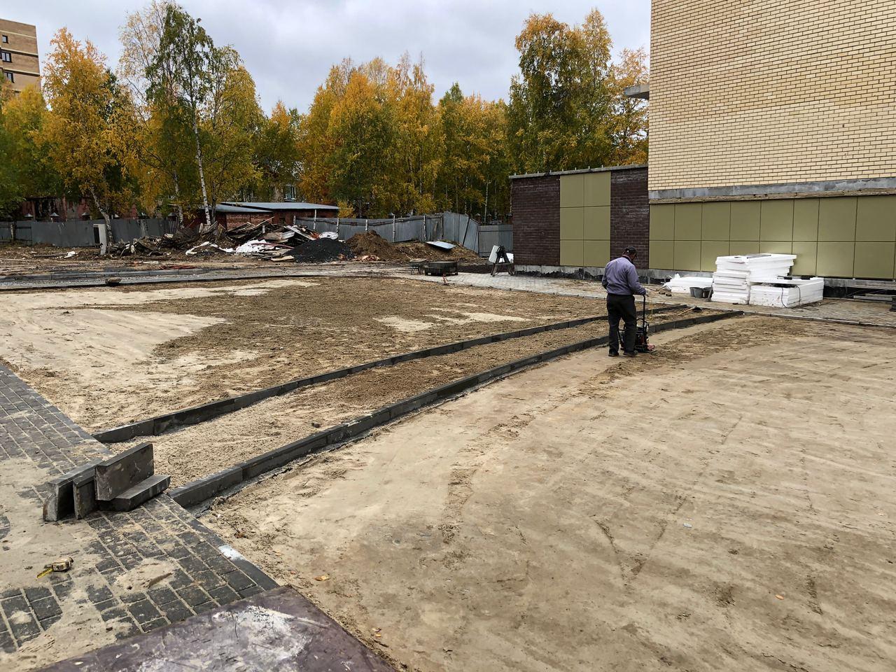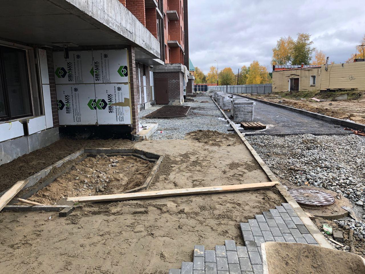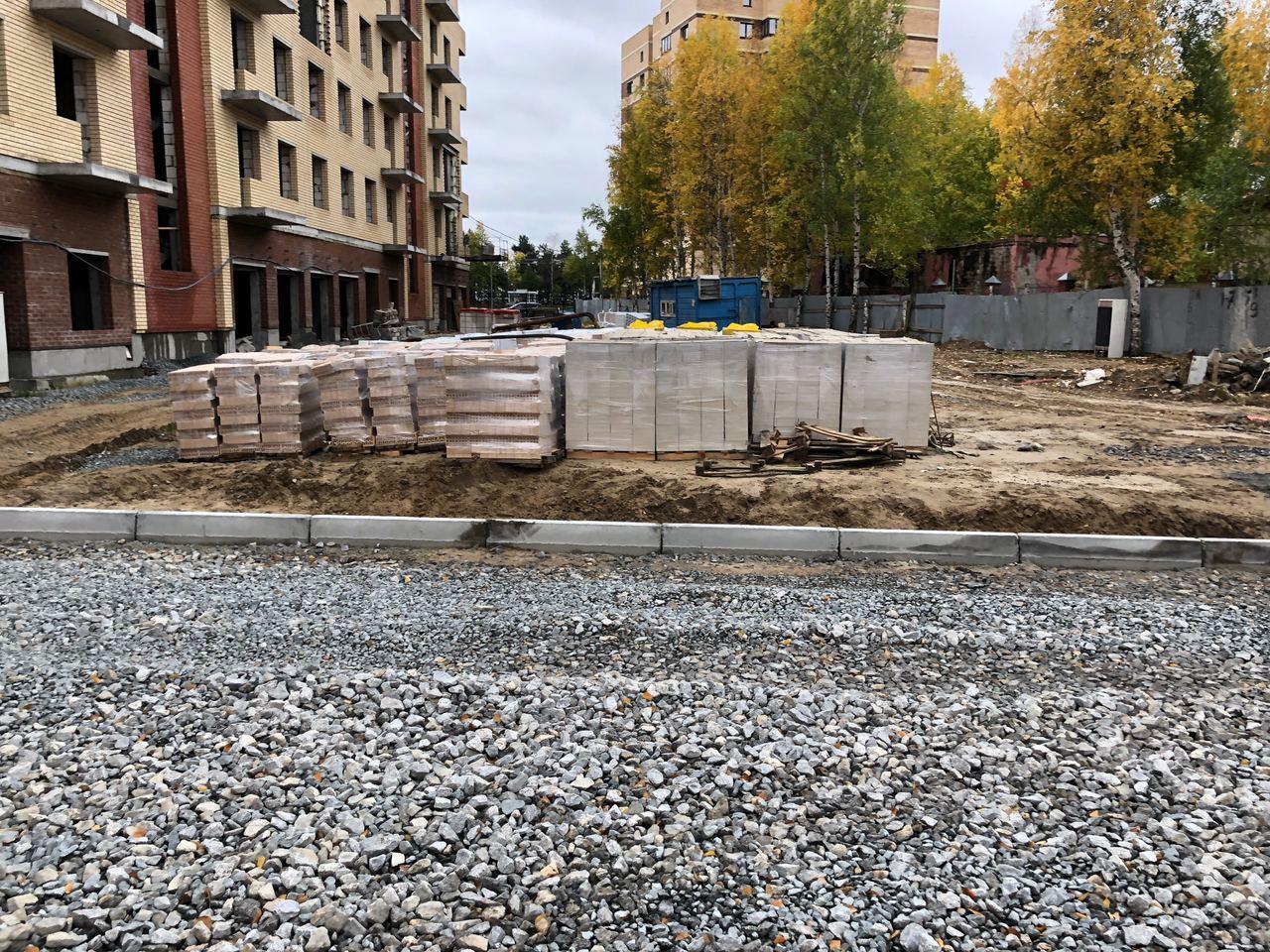 -ведётся подготовка под устройство покрытия из тротуарной плитки