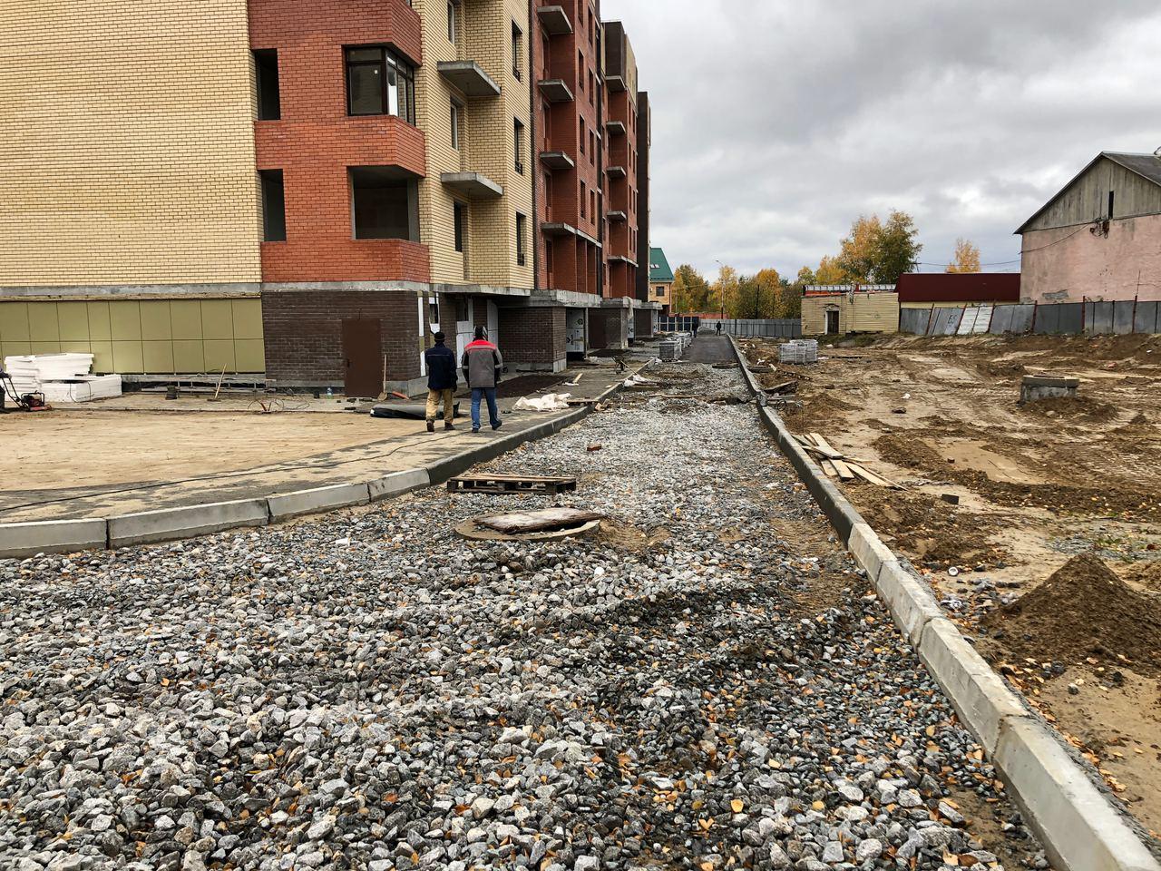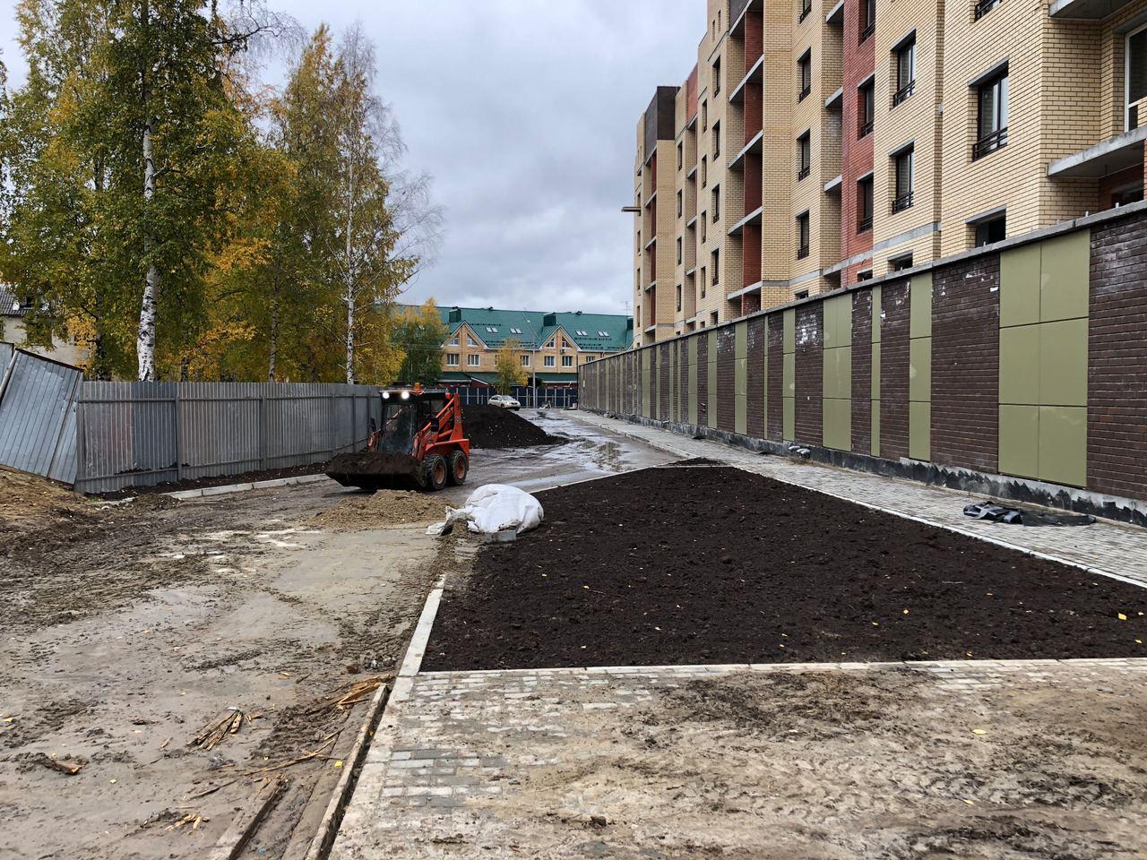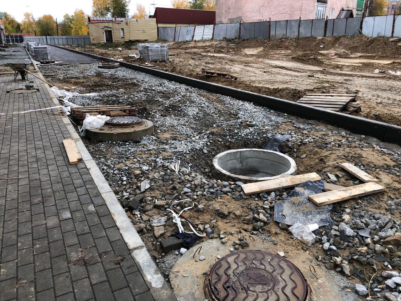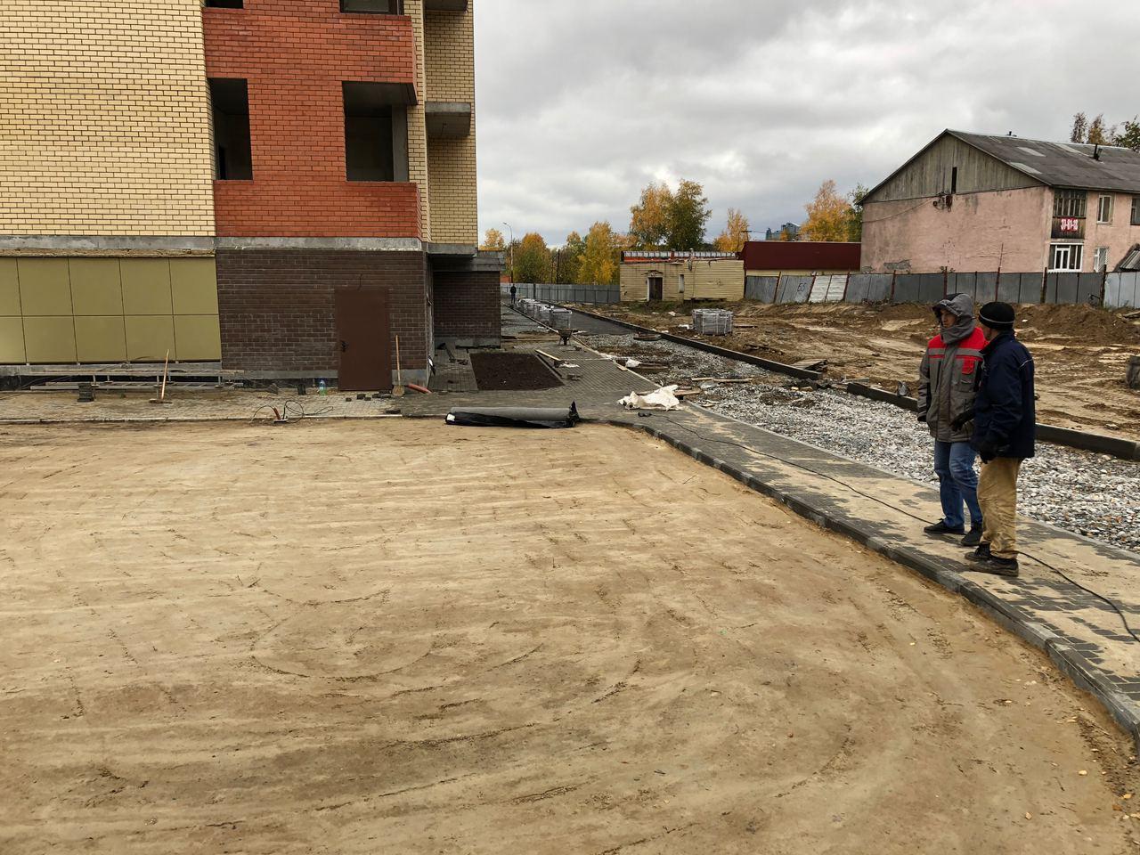 -ведётся подготовка под устройство покрытия из тротуарной плитки