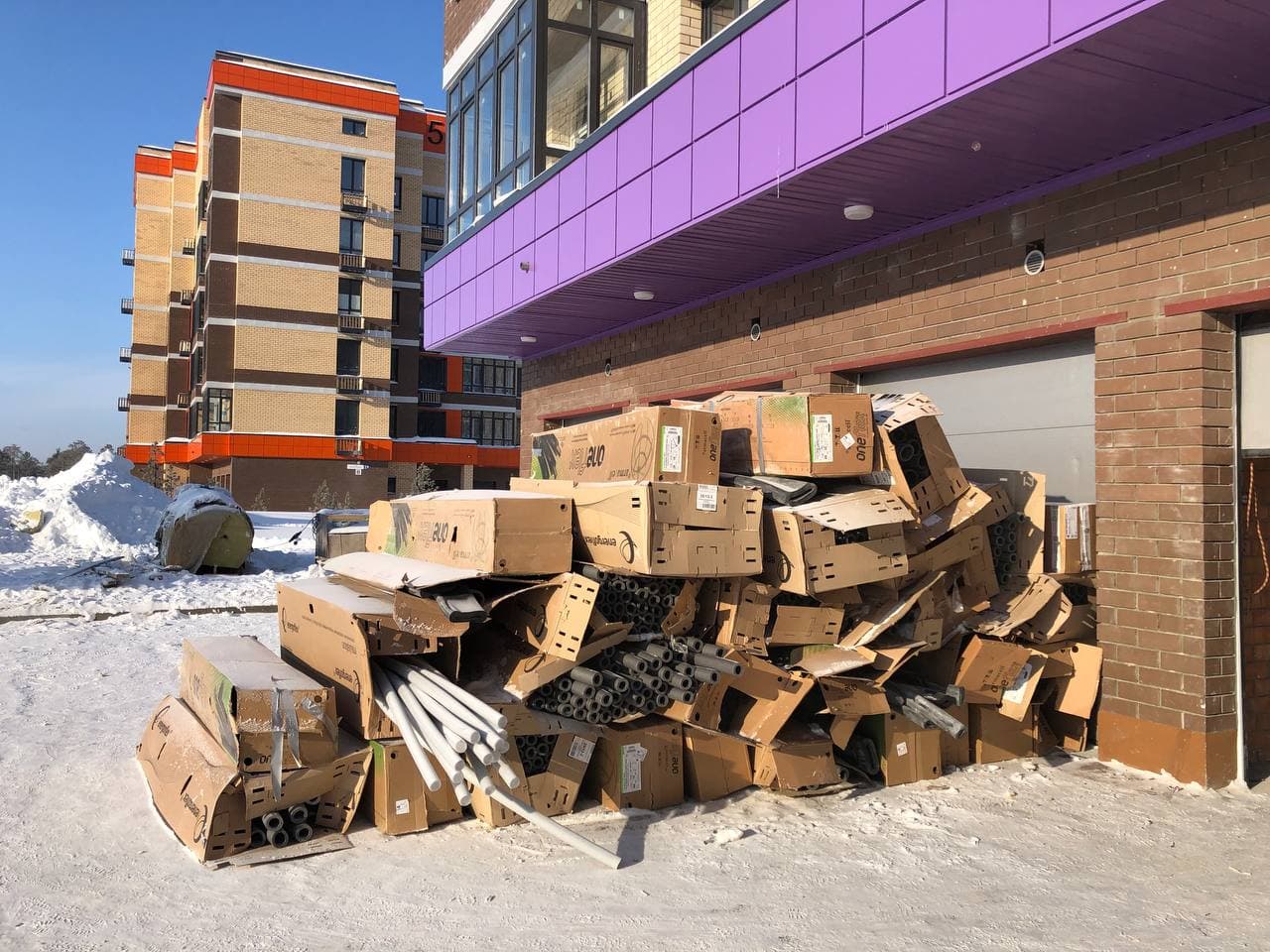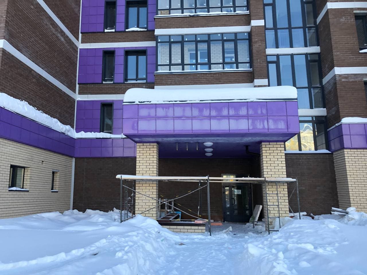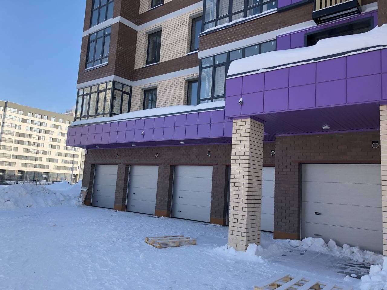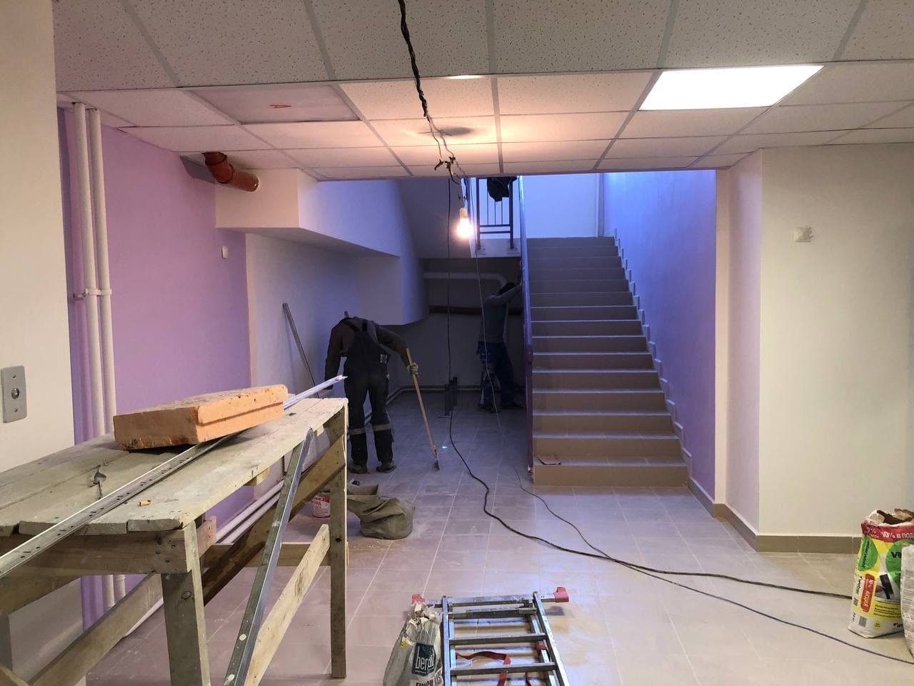 Ведутся работы по отделке мест общего пользования (финишная отделка стен, монтаж потолков), проводятся пуско-наладочные лифтового оборудования. На первых этажах проводятся работы по утеплению гаражей, отделке коридоров. Монтаж гаражных электрощитов. Ведутся работы по монтажу корзин для кондиционеров. В квартирах проводятся работы по разводке систем водоснабжения (для двух санузлов).