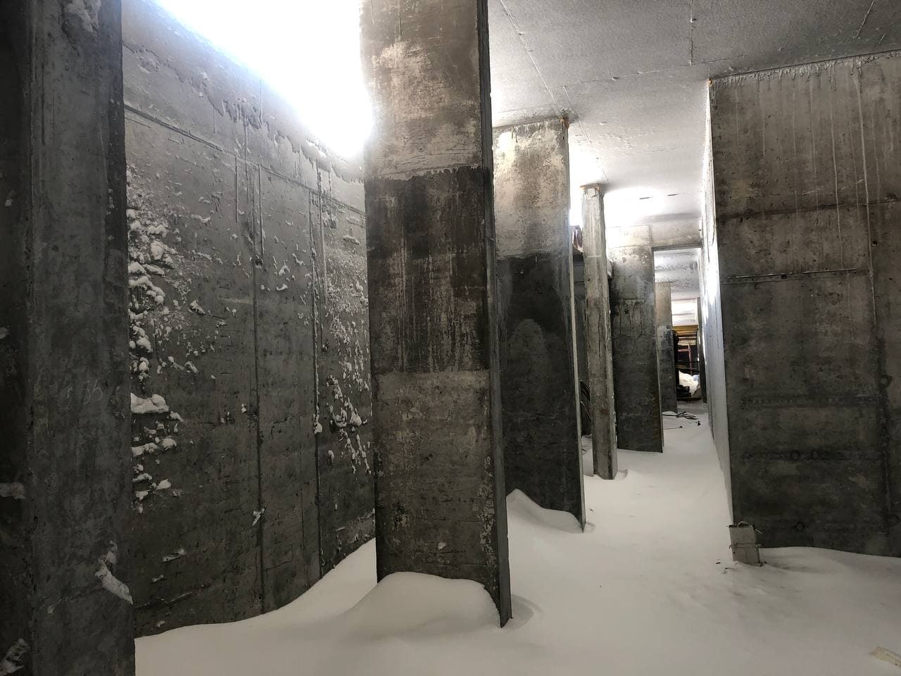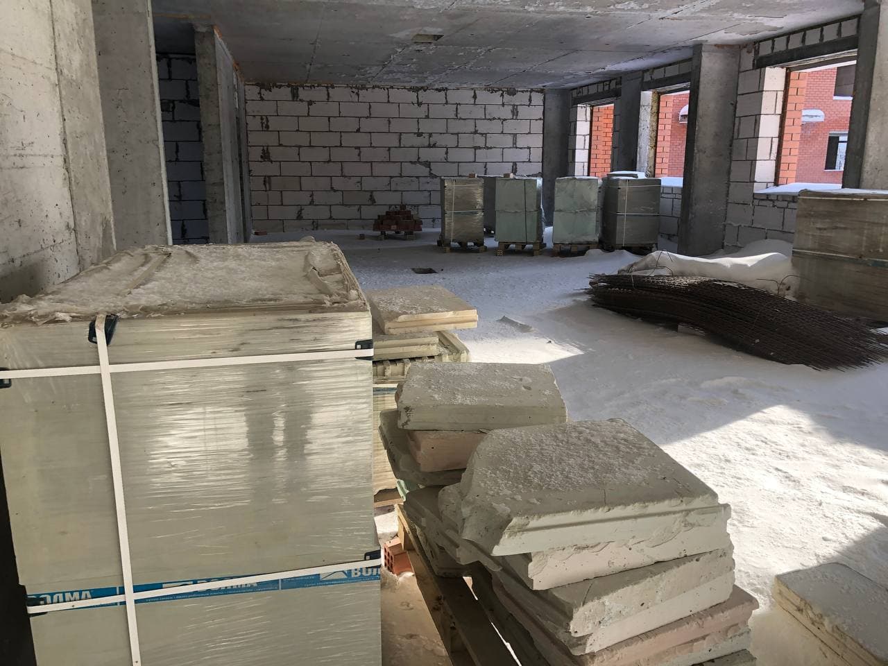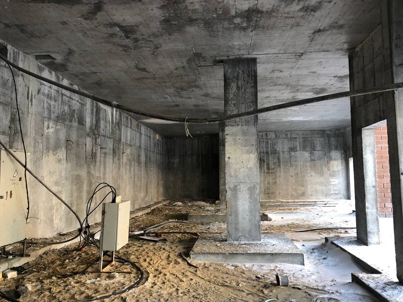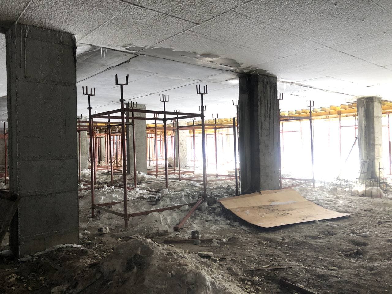 Ведутся работы по устройству монолитной плиты перекрытия паркинга. Подготовка и монтаж арматурных каркасов и опалубки стен помещений паркинга.