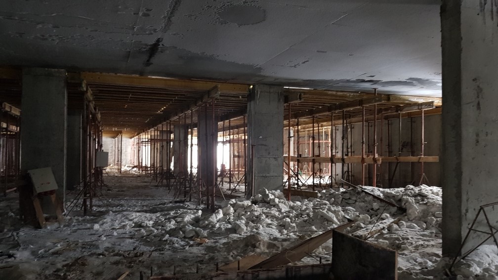 Ведутся работы по устройству монолитной плиты перекрытия паркинга.
