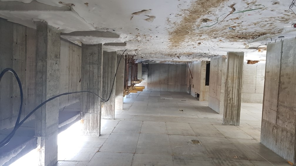 Ведутся работы по устройству армирования, приемка бетона конструкций плиты перекрытия и стен паркинга.