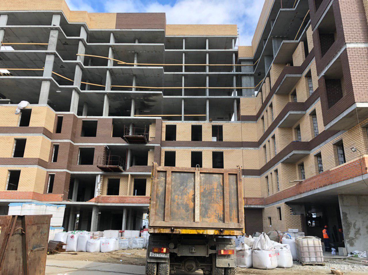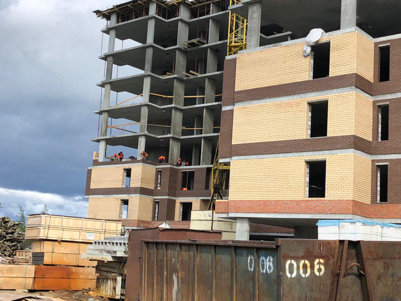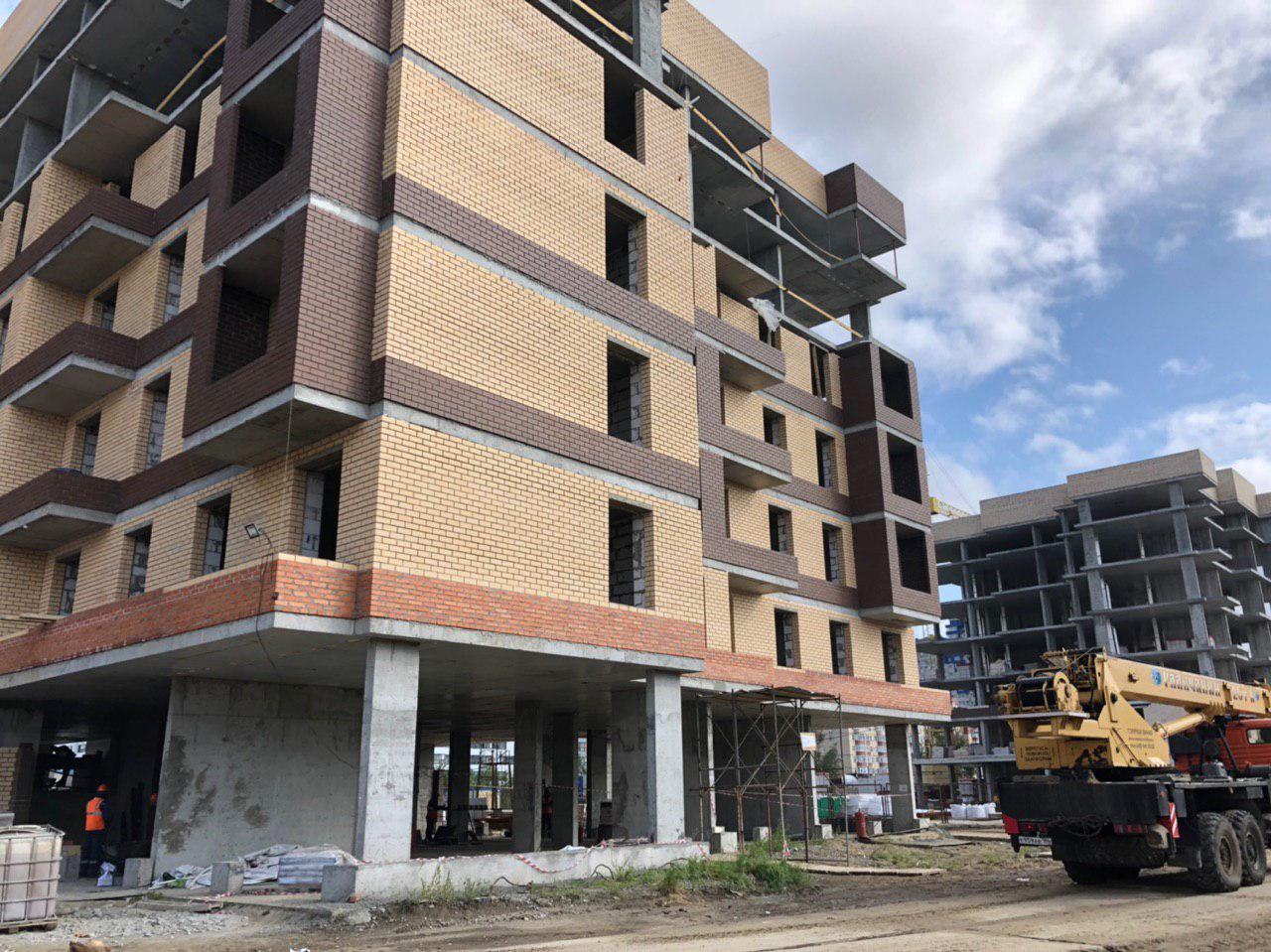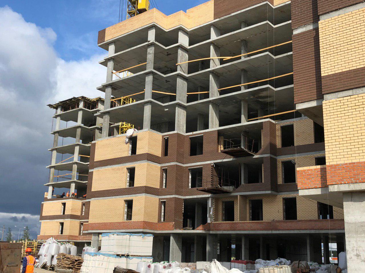 Ведутся работы по укладке ограждающих конструкций на 2,3,4, этажах из кирпича 6,7,8 этажных секций.