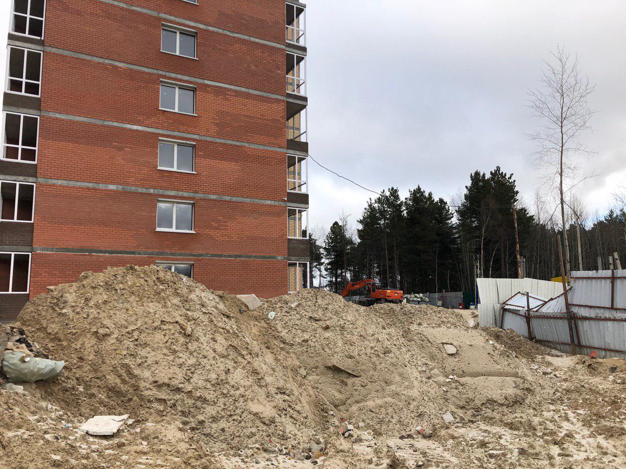 Ведутся земляные работы для укладки наружных и внутренних инженерных сетей (горячего и холодного водоснабжения). Проводятся работы по проводке электрических сетей внутри жилого дома. Работают экскаватор и бульдозер.