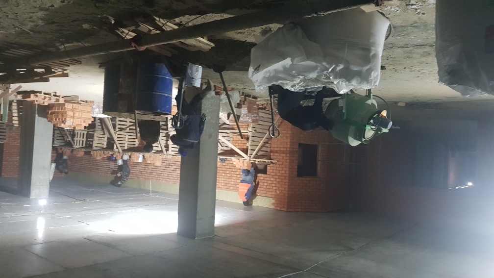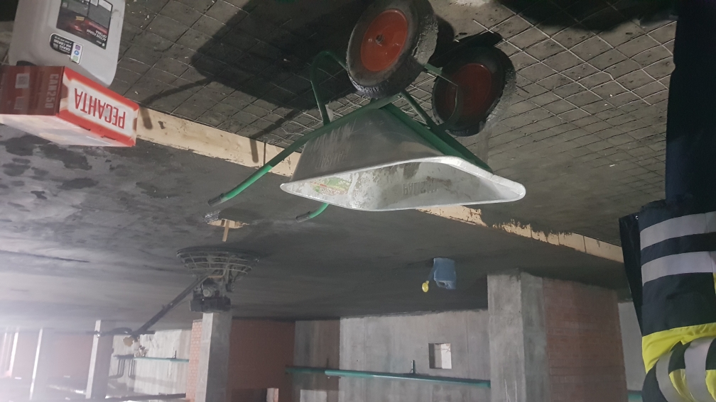 На строительной площадке ведутся строительно-монтажные работы.