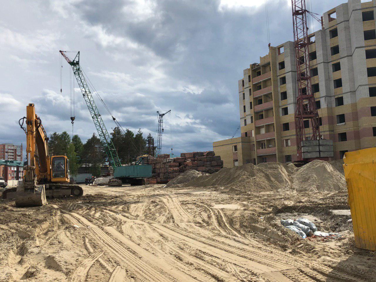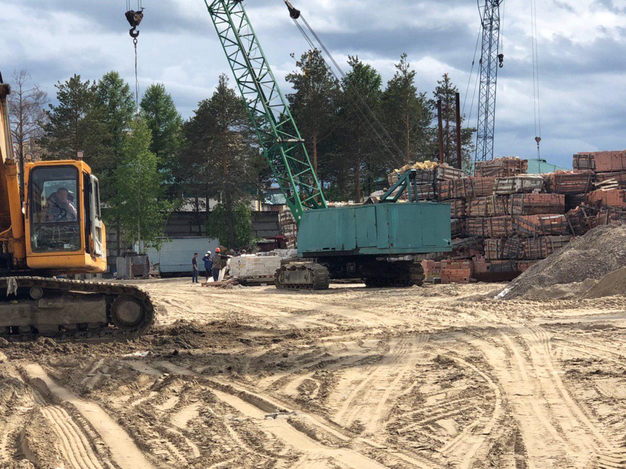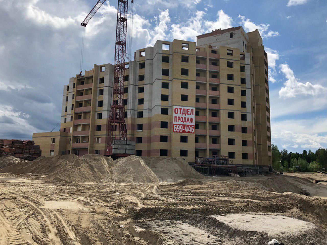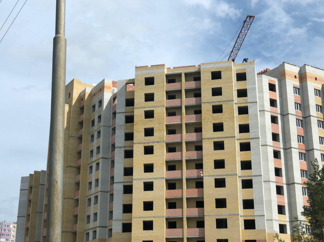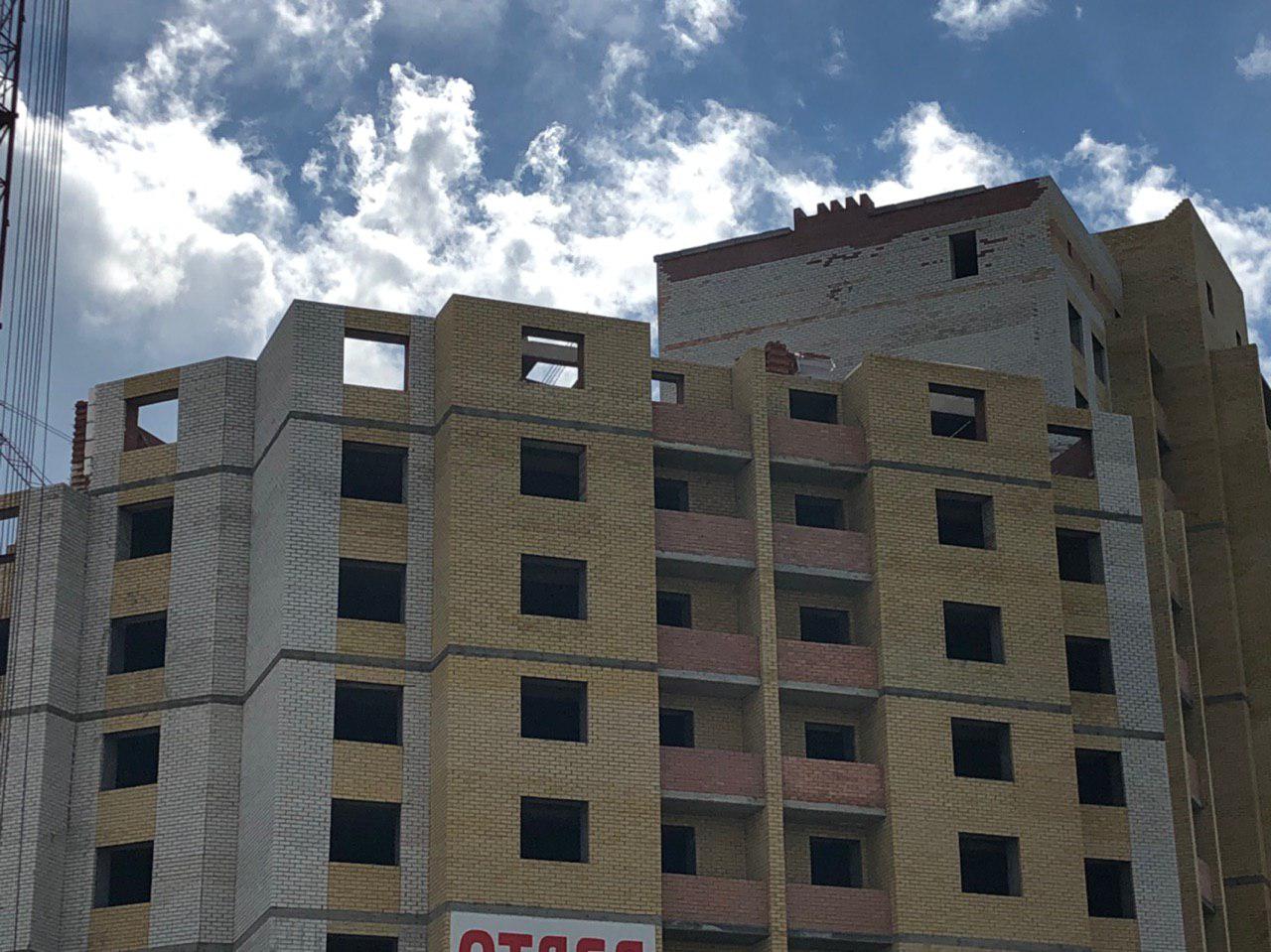 Ведется кладка ограждающих конструкций многоквартирного жилого дома и перегородок 8 этажа. Ведется кладка ограждающих конструкций многоквартирного жилого дома и перегородок 9 этажа каменщиками в количестве 6 человек. Работают 2 крана.