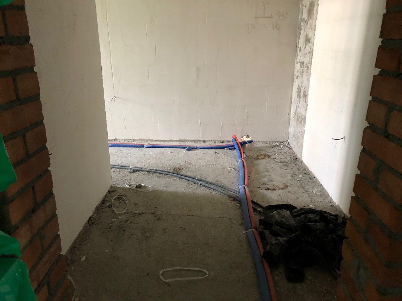 Ведутся работы по прокладке труб теплоснабжения внутри помещений.