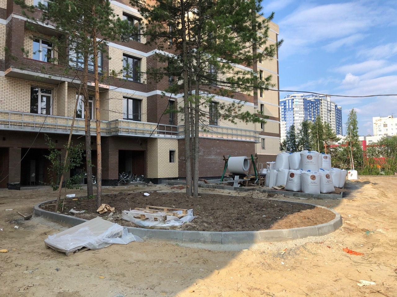 Ведутся работы по благоустройству территории, асфальтирование тротуаров.