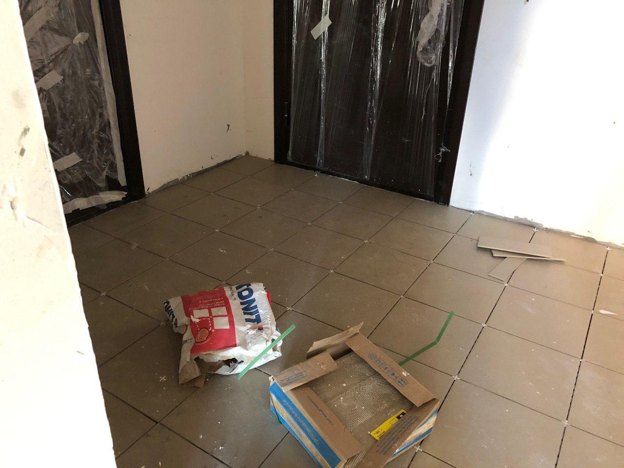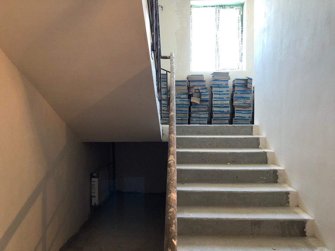 Ведутся внутренние чистовые отделочные работы. Во всех подъездах ведутся работы по укладке плитки в местах общего пользования, в 3-7 секциях производится шпатлевка, чистовая покраска мест общего пользования. На строительной площадке находится порядка 50 человек.