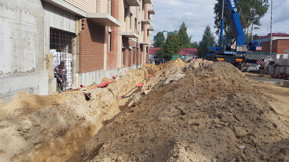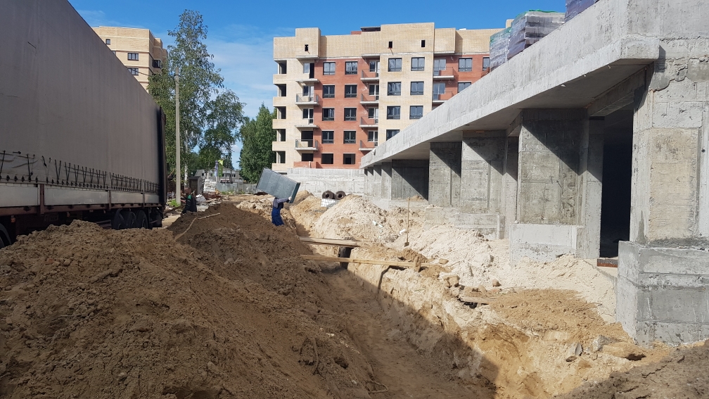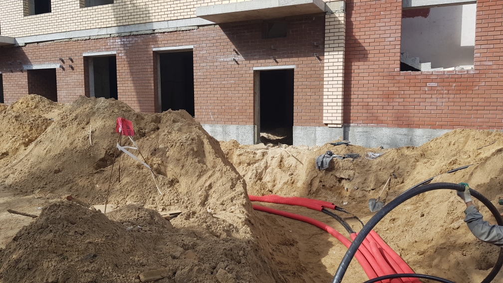 Продолжаются работы по устройству многослойной стены. Устройство перегородок из пазогребневой плиты. Монтаж внутренней электропроводки. Устройство монолитных входных групп с плиты паркинга. Подготовка песчаного основания под полы первого этажа. Монтаж воздуховодов вентиляции. Монтаж оконных конструкций. Монтаж защитных решеток на окна. Монтаж стояков канализации и ХГВС. Установка радиаторов отопления. Проводятся работы по устройству кровельного пирога. Ведутся работы по монтажу колодцев и прокладке канализационных систем. Ведутся работы по реконструкции наружных сетей. Монтаж наружных кабельных линий, внутренние работы по слаботочным сетям Общестроительные работы.