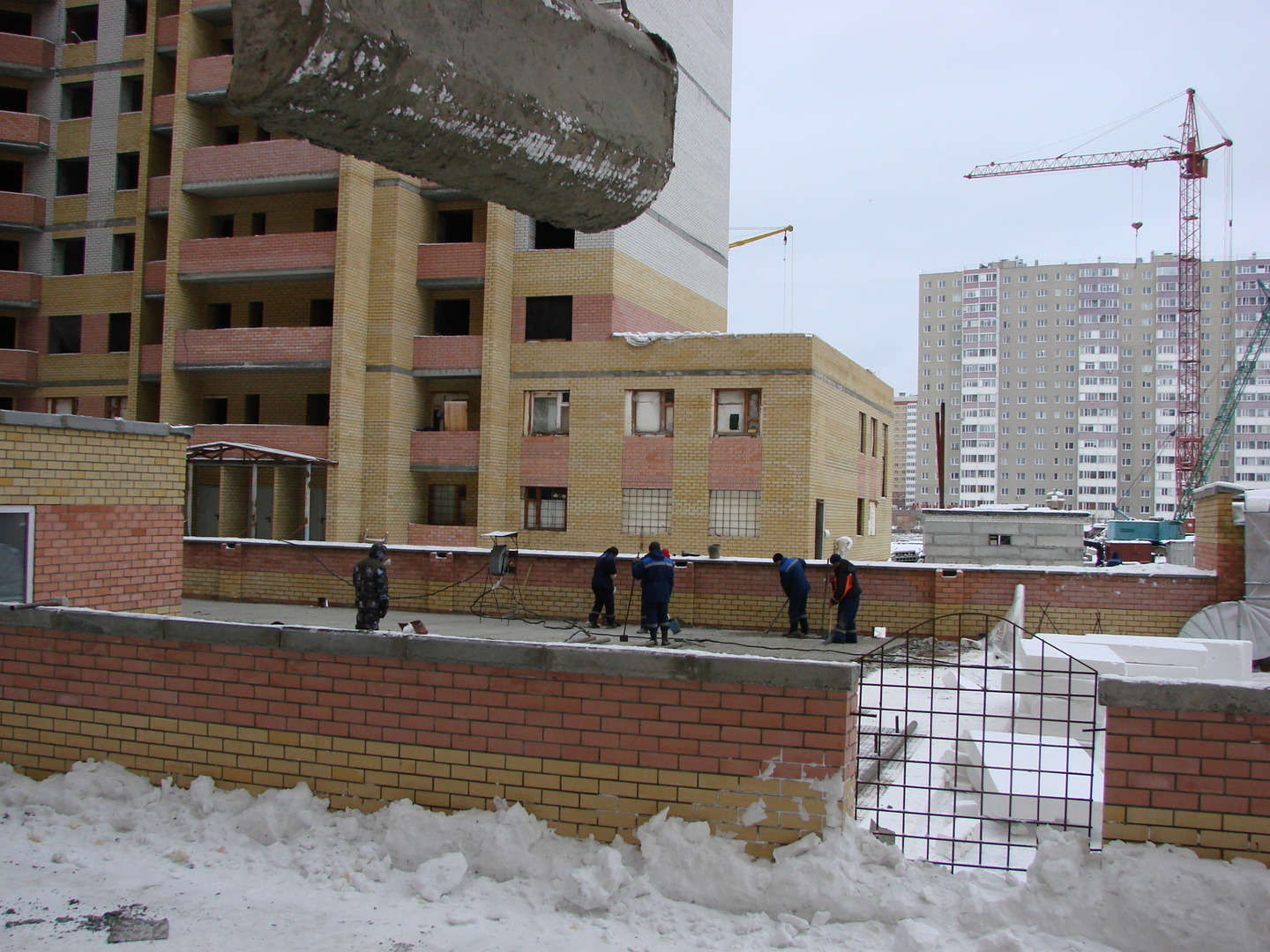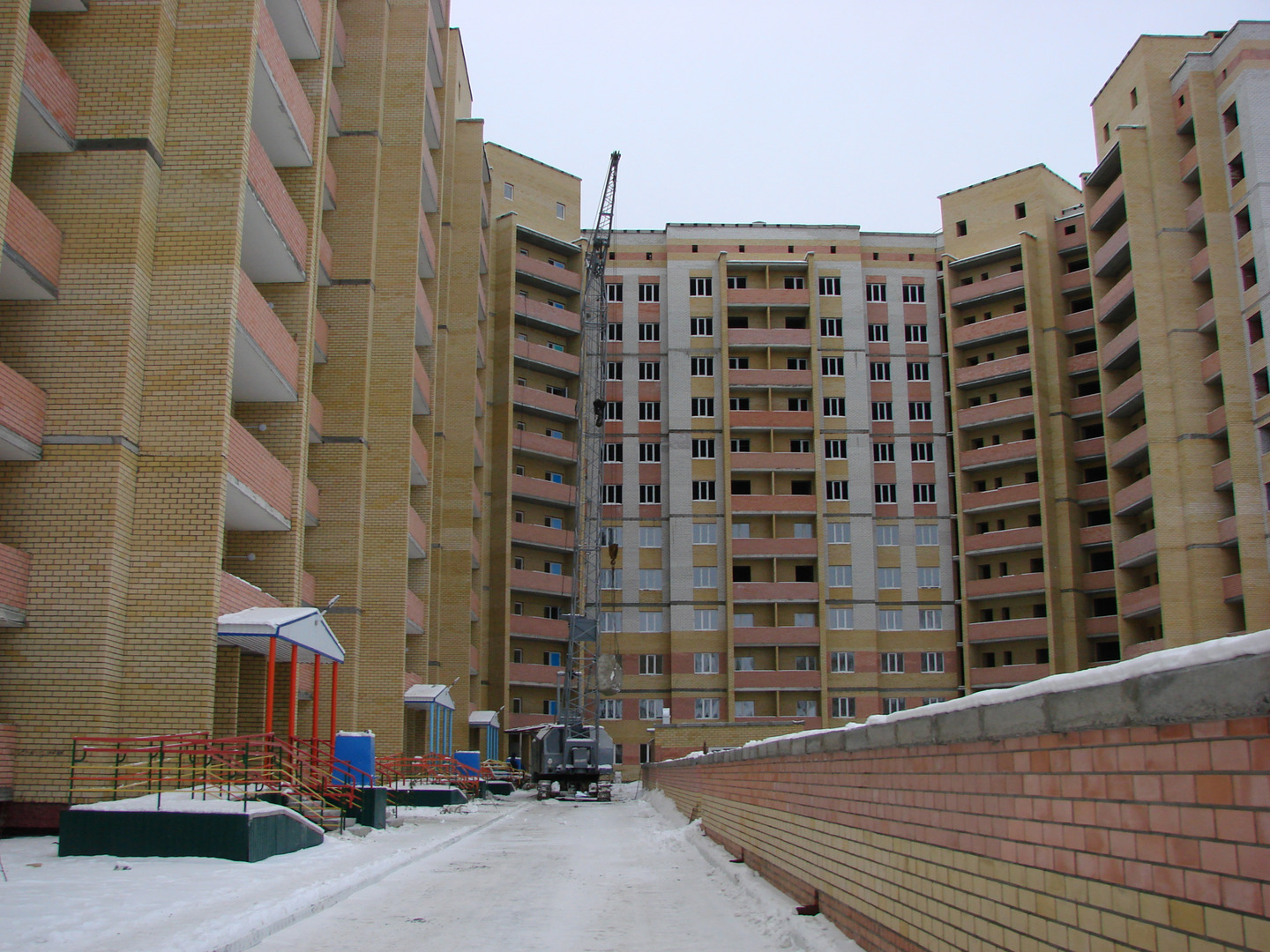 На строительной площадке первых четырех подъездов находятся ориентировочно 20-25 рабочих.