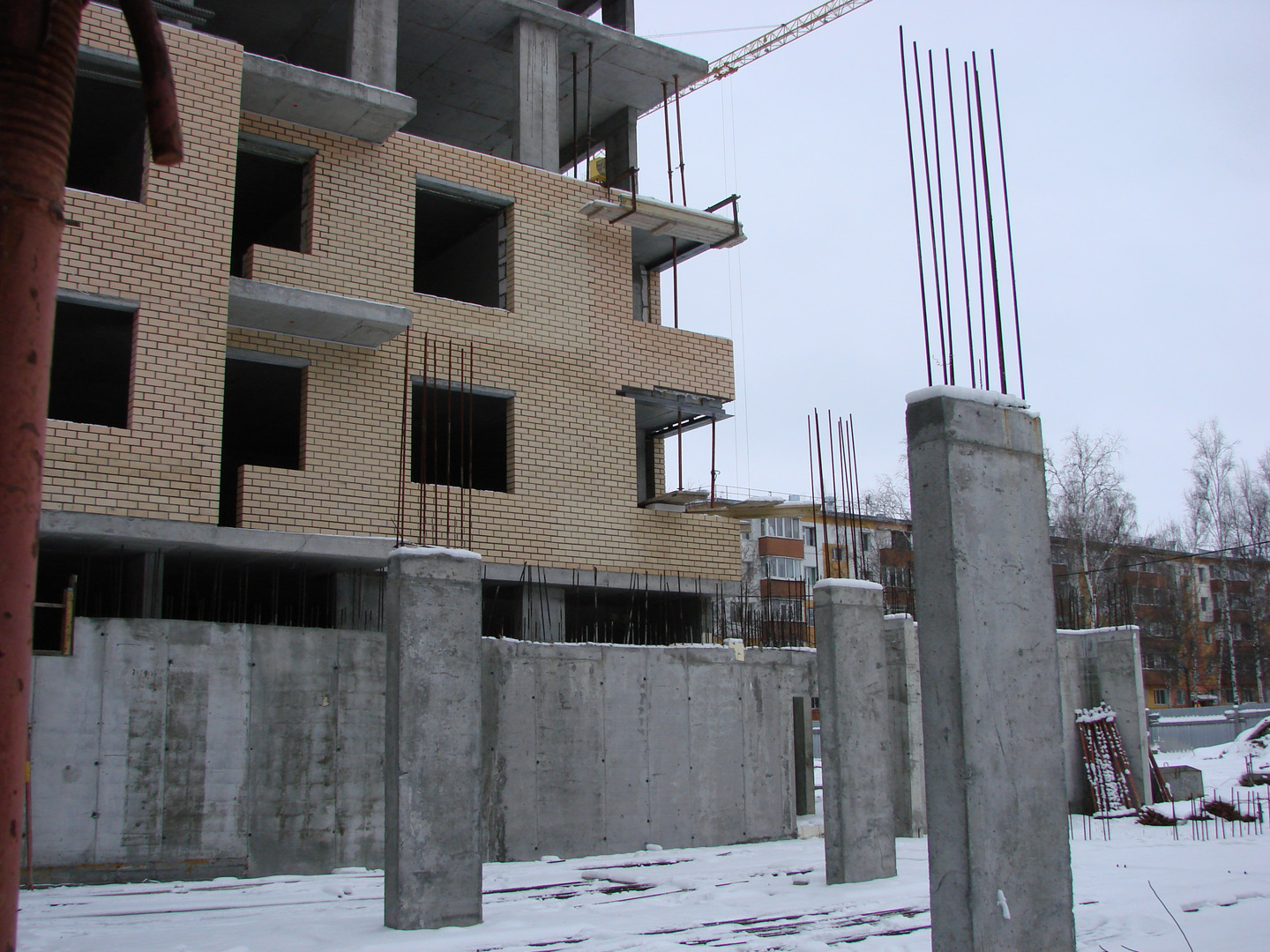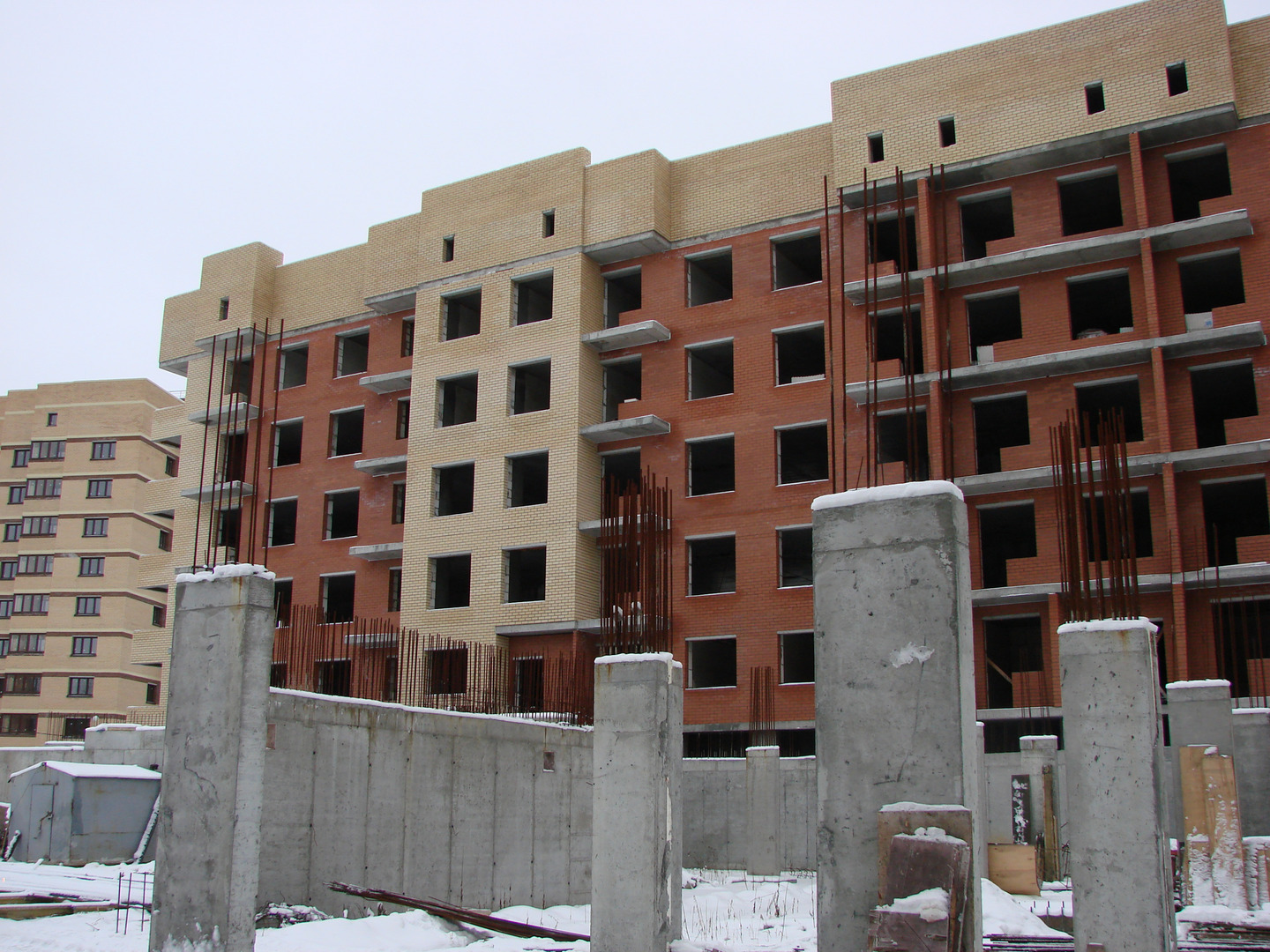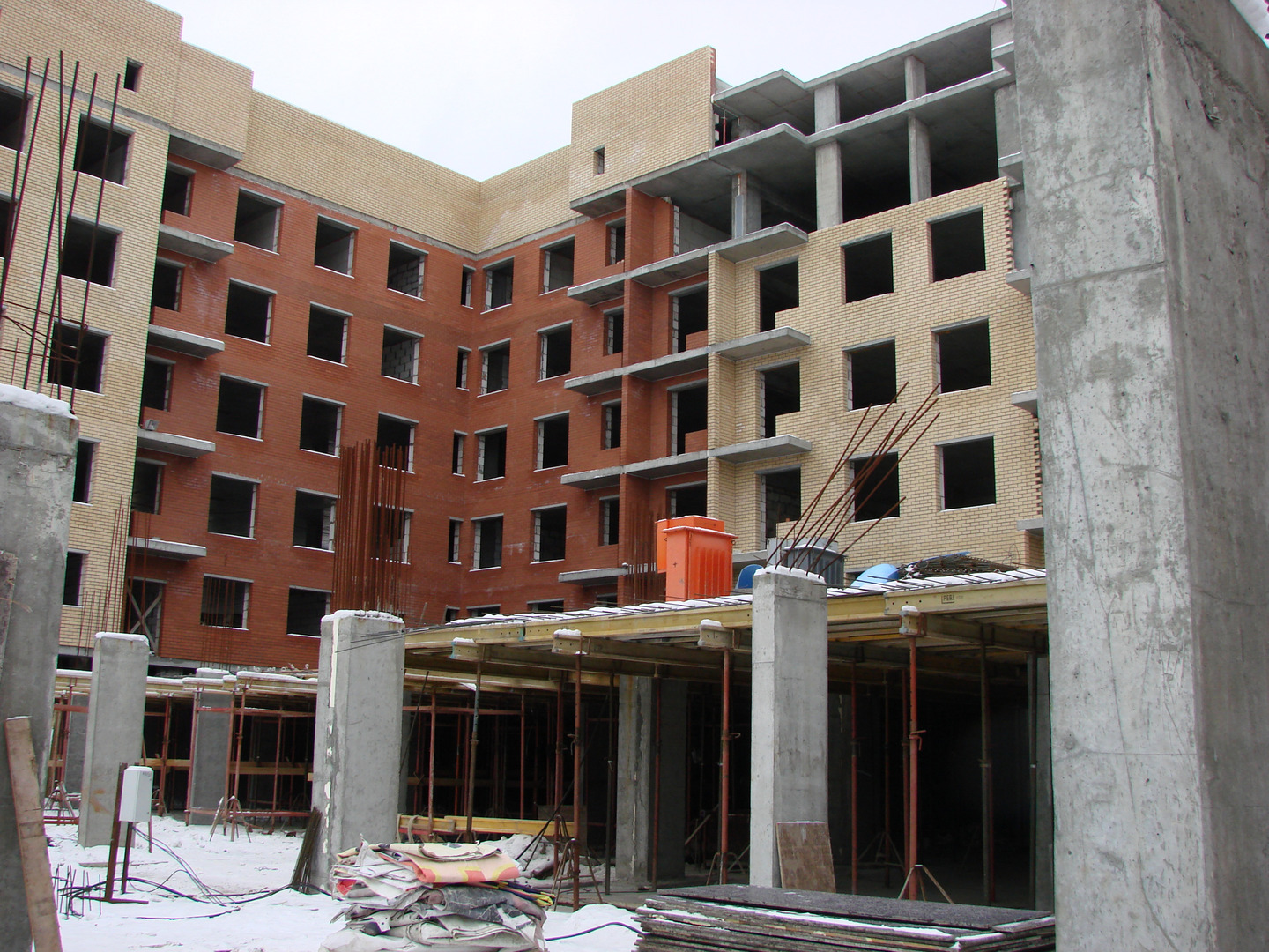 Продолжаются работы по устройству наружных ограждающих конструкций.