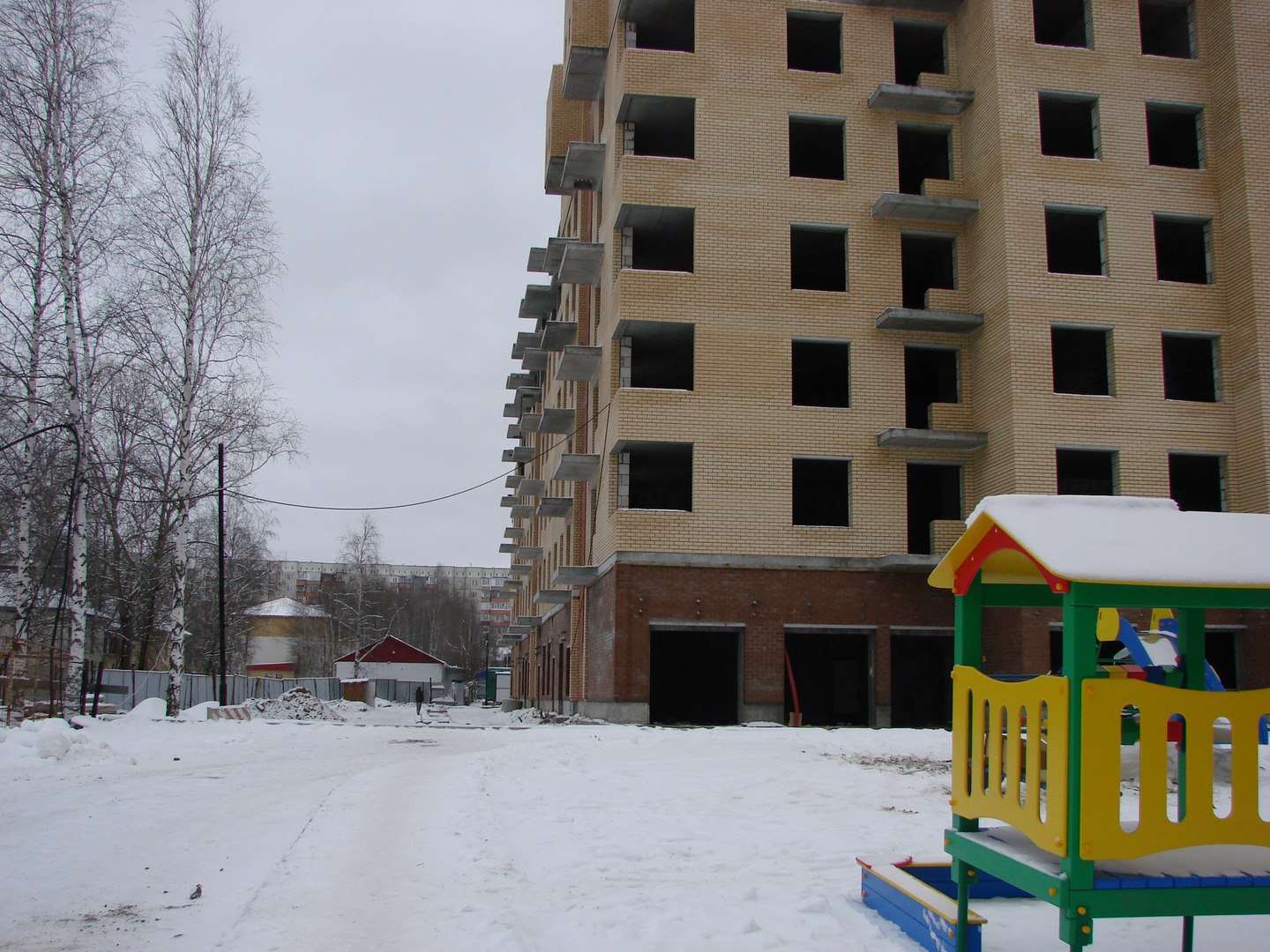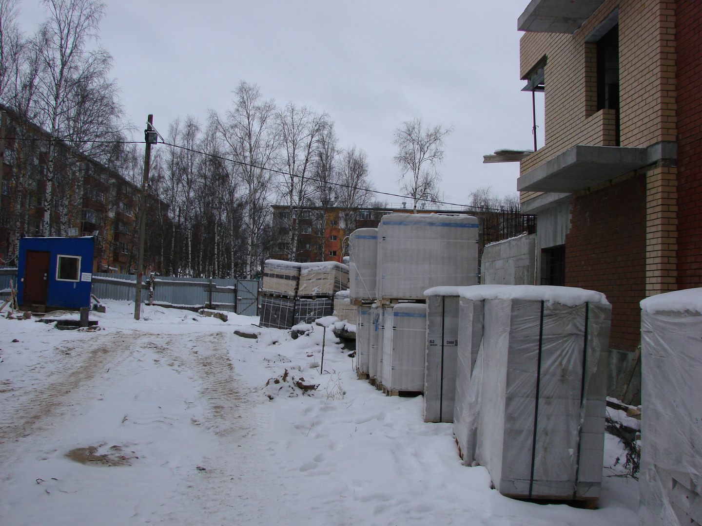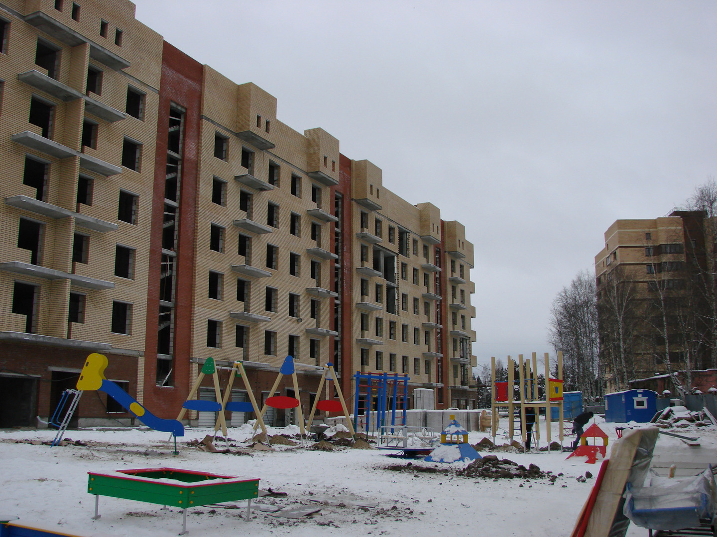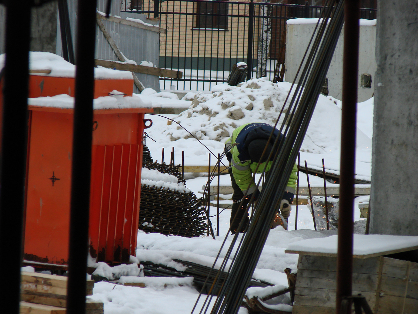 Продолжаются работы по устройству наружных ограждающих конструкций.