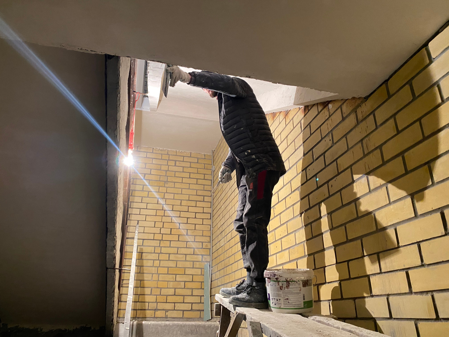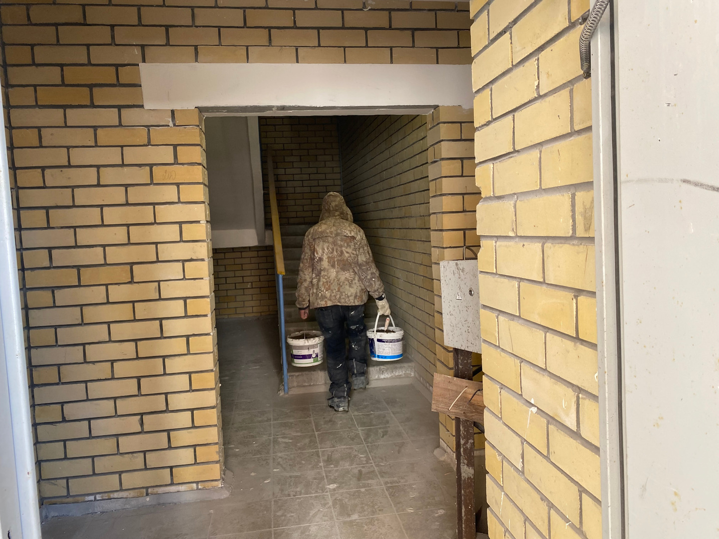 В 8 подъезде проводятся работы по заливке отверстий, штукатурке стен, сборке лифтов, запущено отопление, выполняются электромонтажные работы.