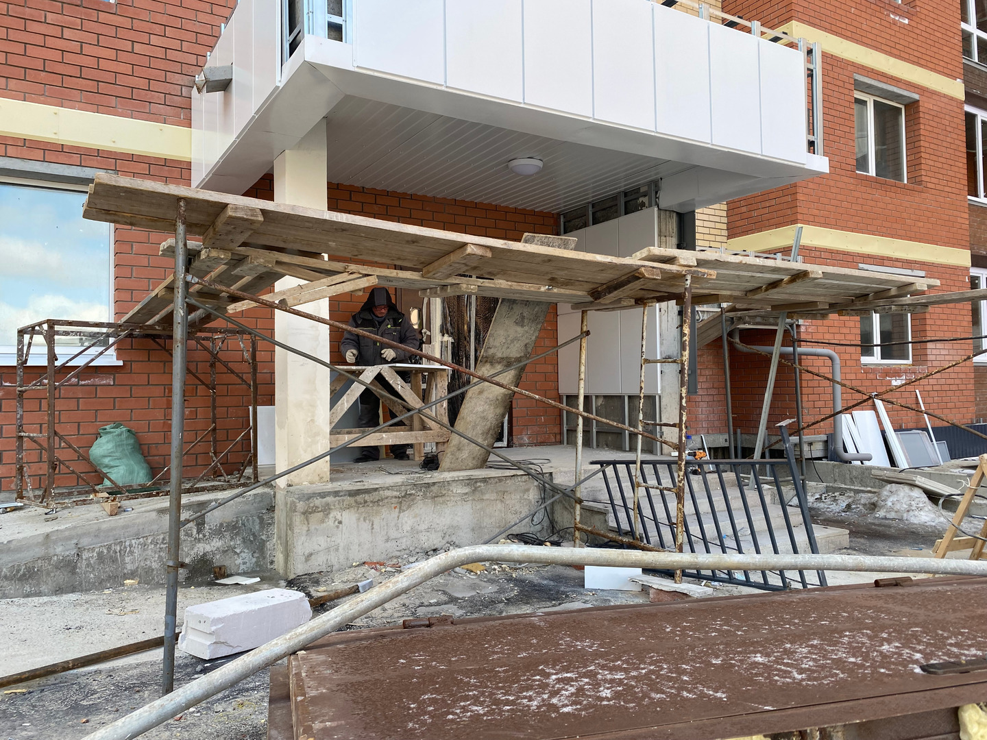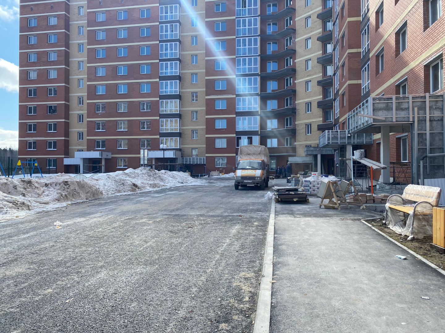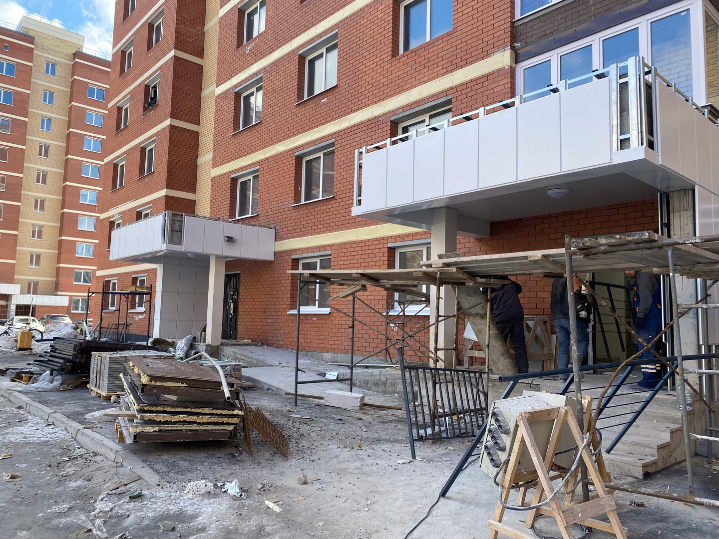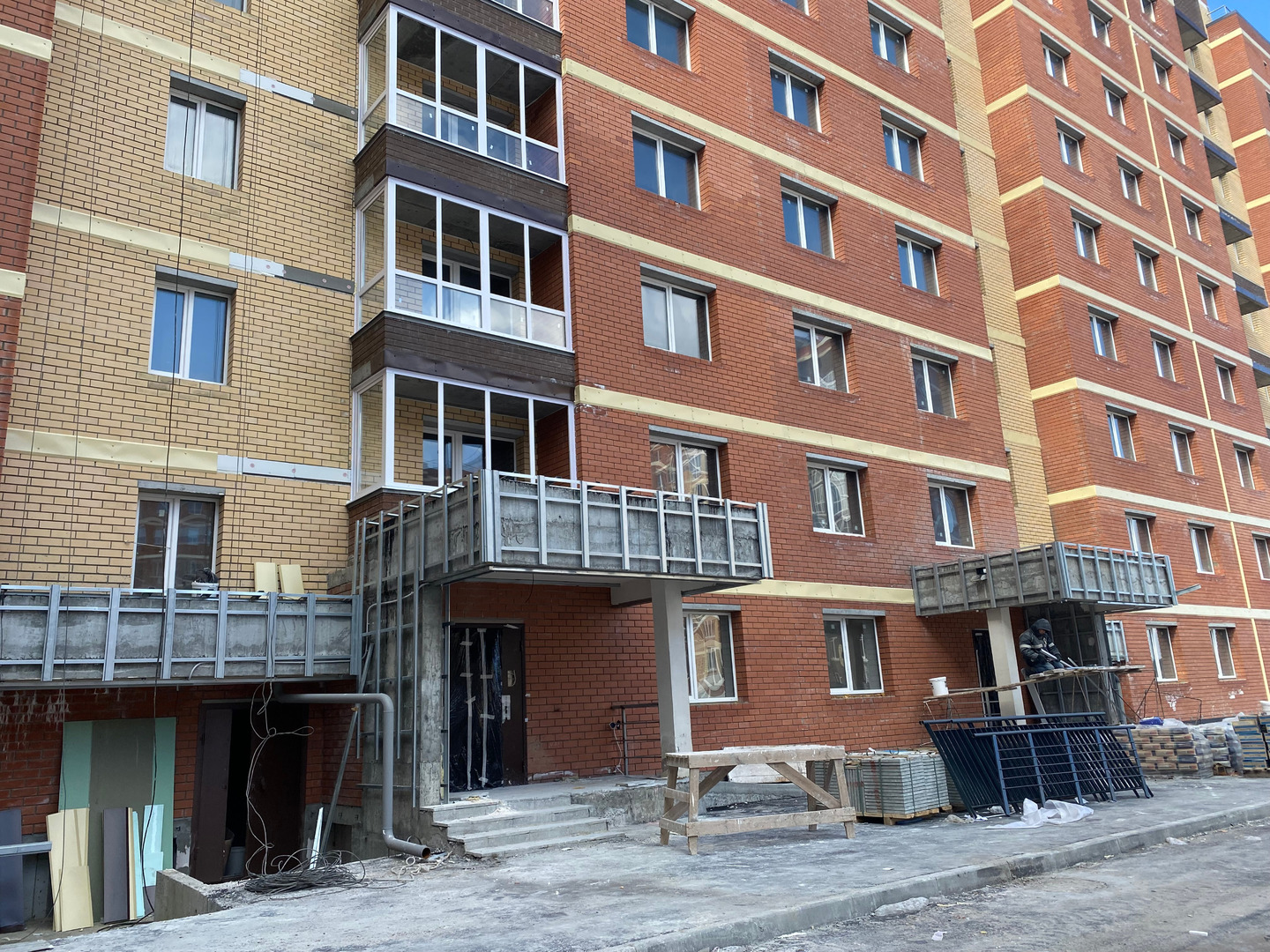 На объекте окончен ремонт ливневой и бытовой канализаций, системы ХГВС. Произведен процесс опресовки ХГВС, работают плиточники, выполняются электромонтажные работы, продолжаются отделочные и фасадные работы, осуществляется монтаж лоджий и лифтов.