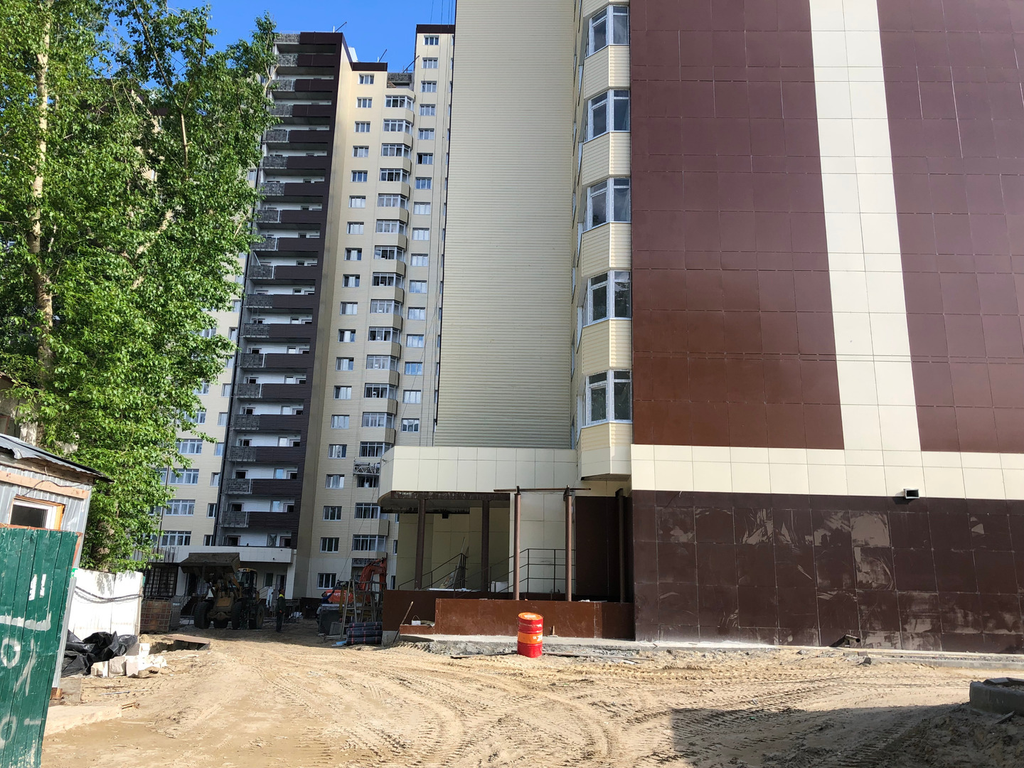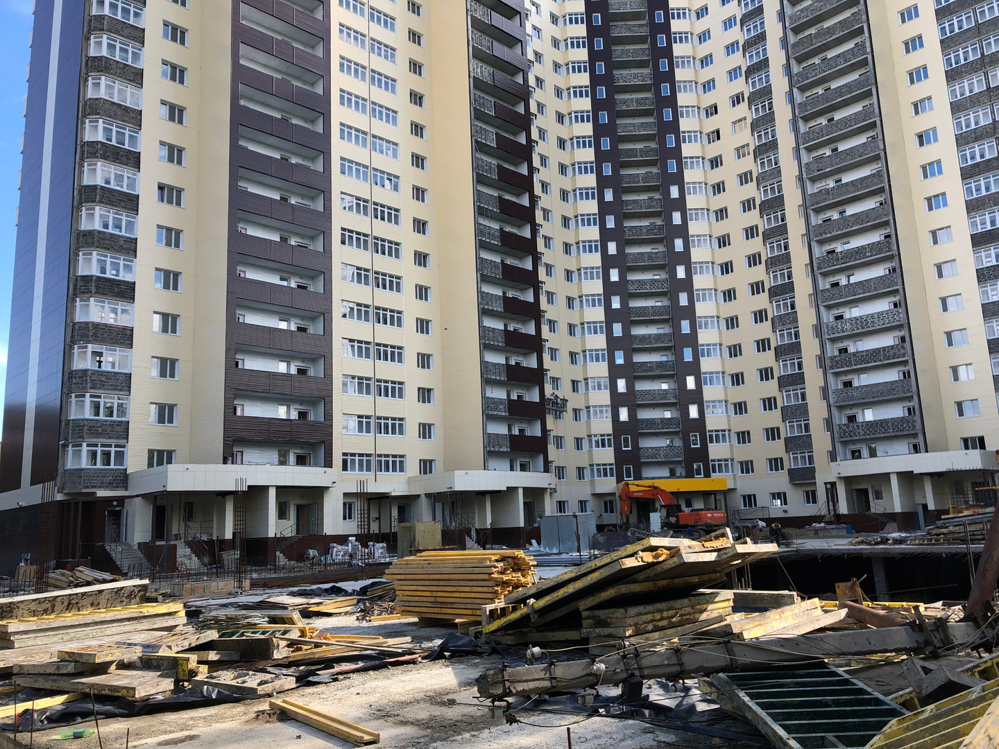 У подъездов ведутся работы силами порядка 2-4 человек по вязки арматурной сетки.