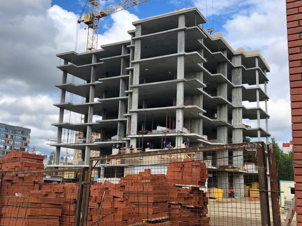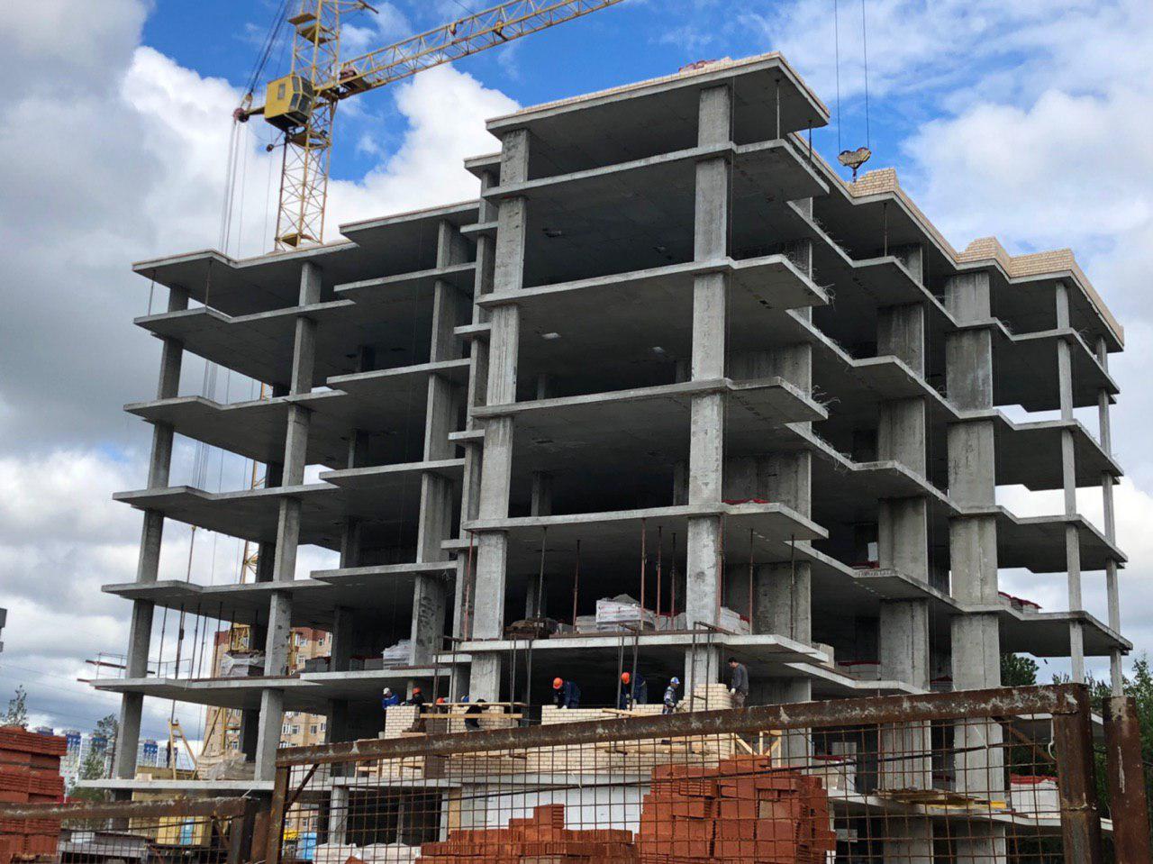 Произведена заливка бетоном опалубки арматурного каркаса монолитных конструкций (колонн) на 6 этаже (ближняя секция).