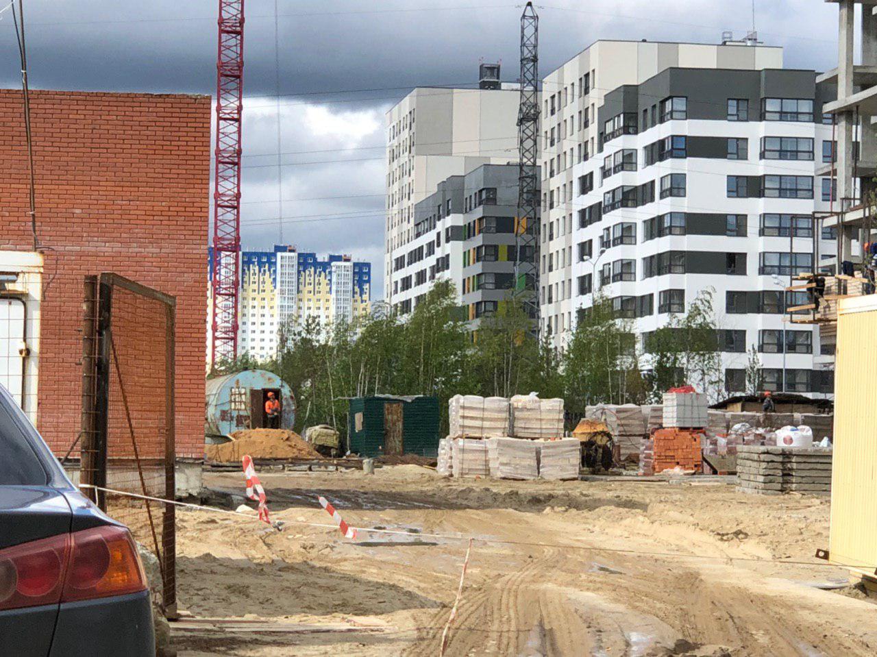 Проведена работа по подъему строительных материалов на каждый этаж. Производится завоз строительных материалов. Работает кран.