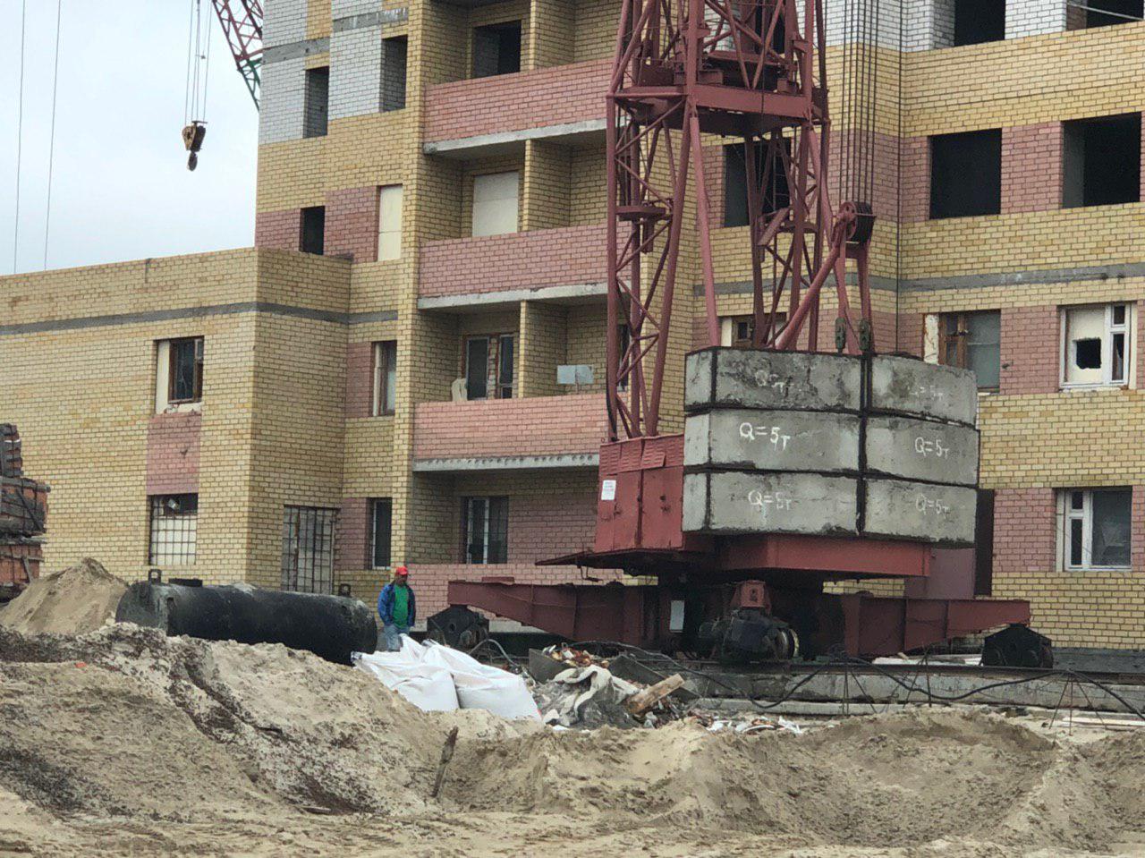 Ведется кладка ограждающих конструкций многоквартирного жилого дома и перегородок. Ведутся работы на кровле.