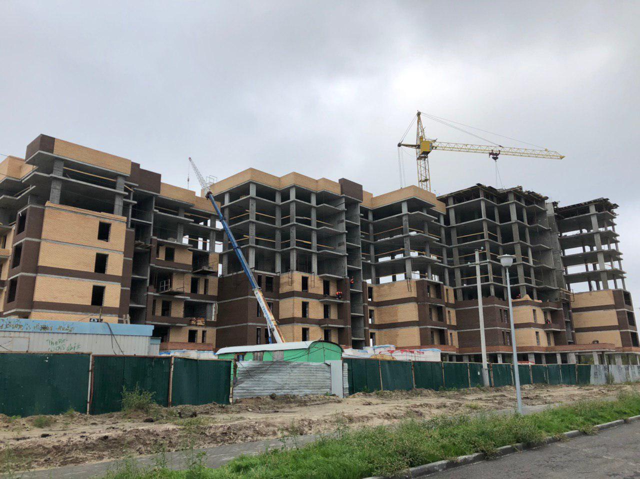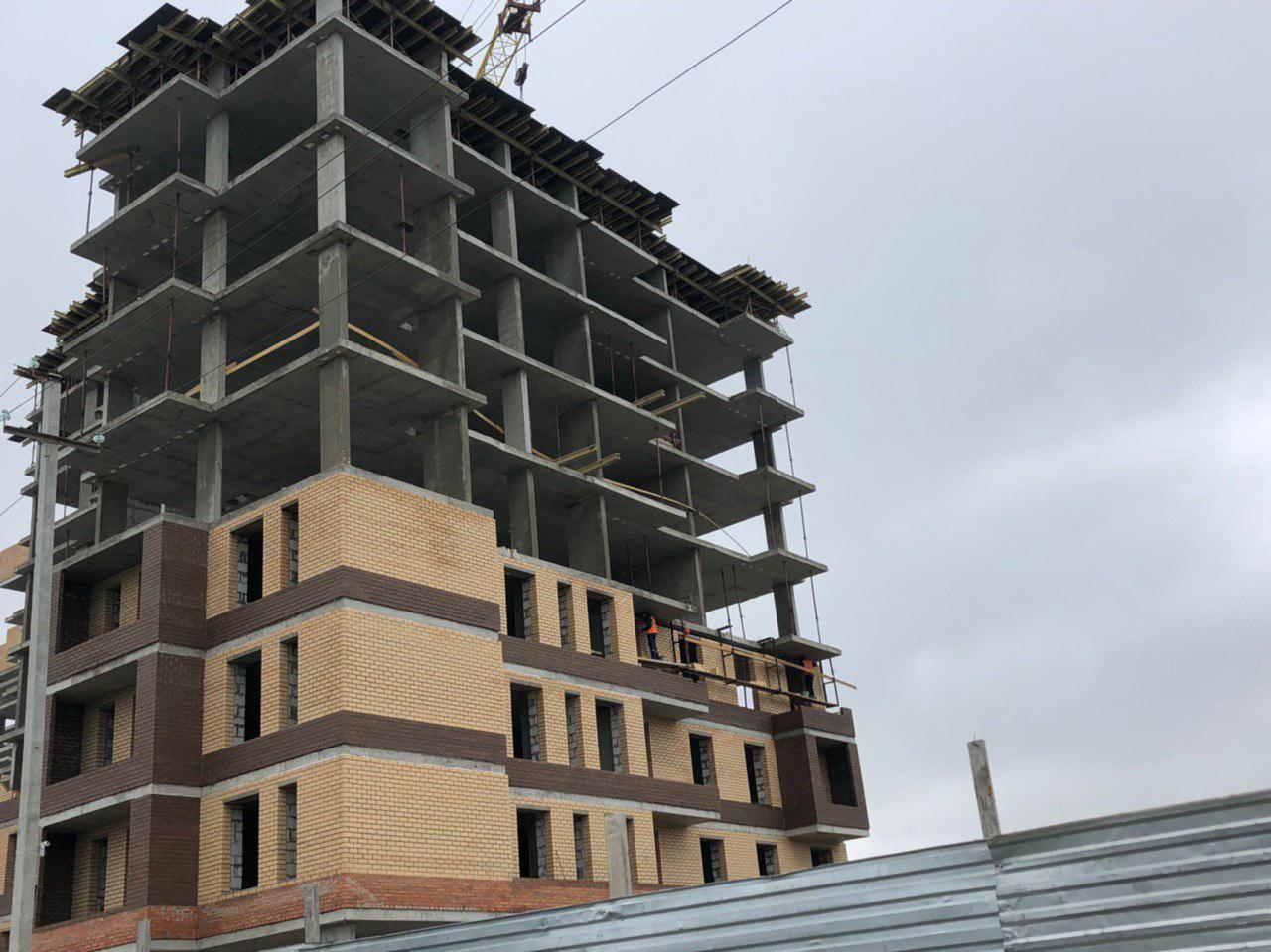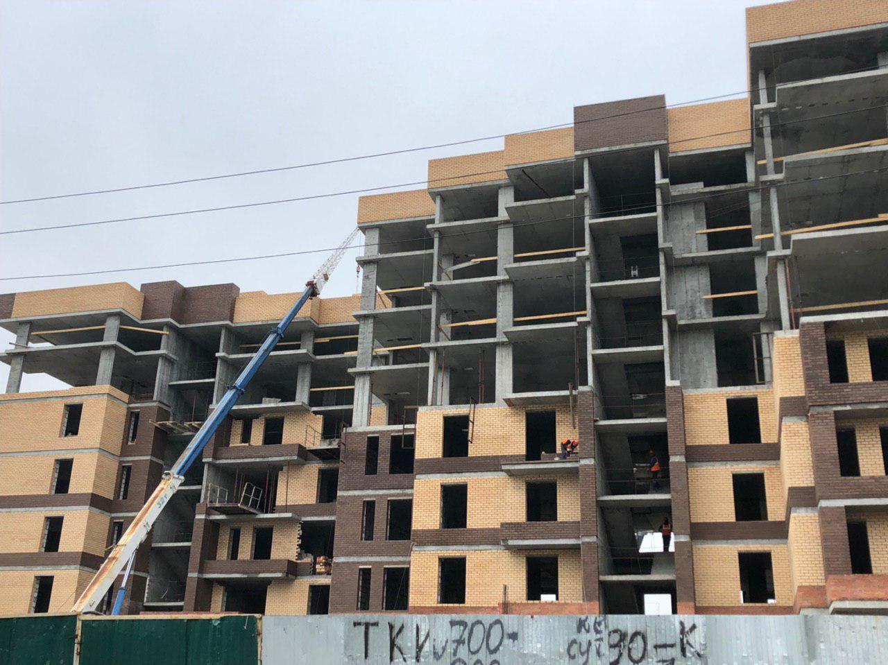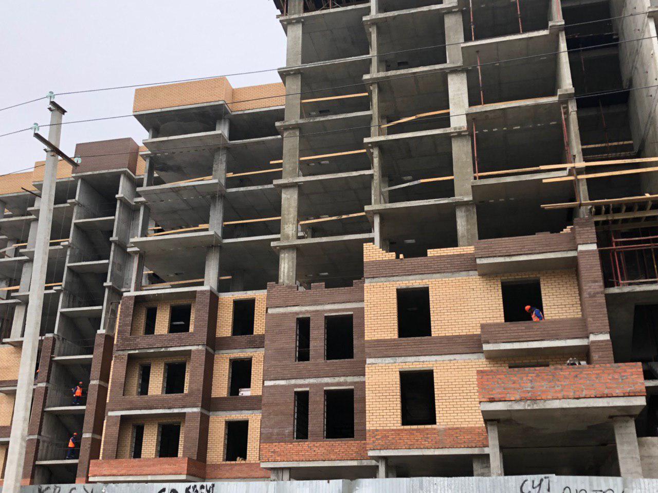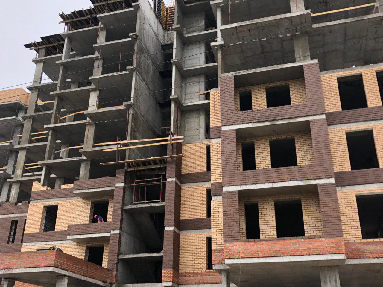 Ведутся работы по укладке ограждающих конструкций на 2,3,4,5 этажах из кирпича 6,7,8 этажных секций.