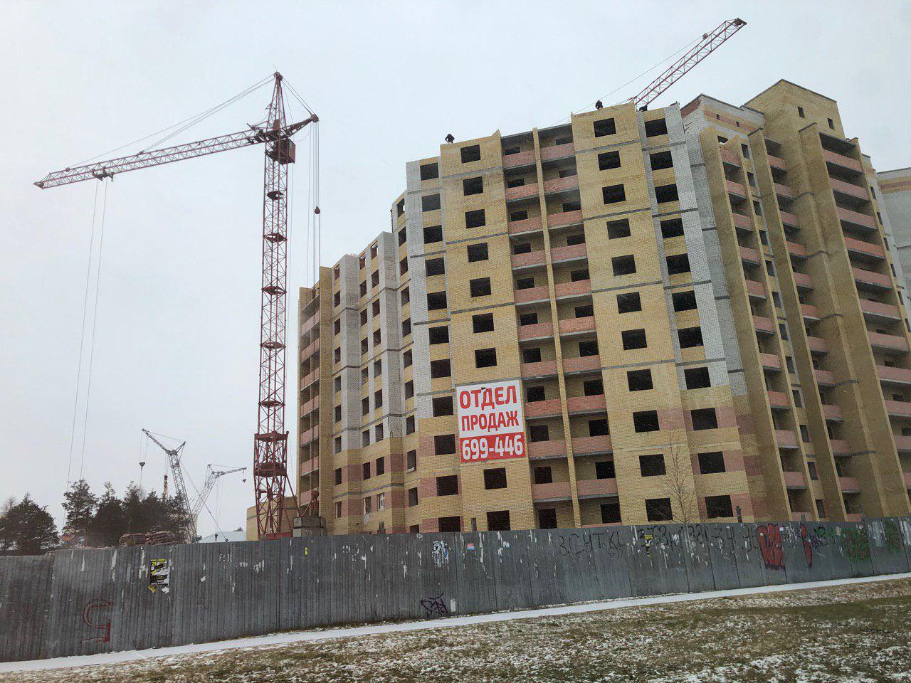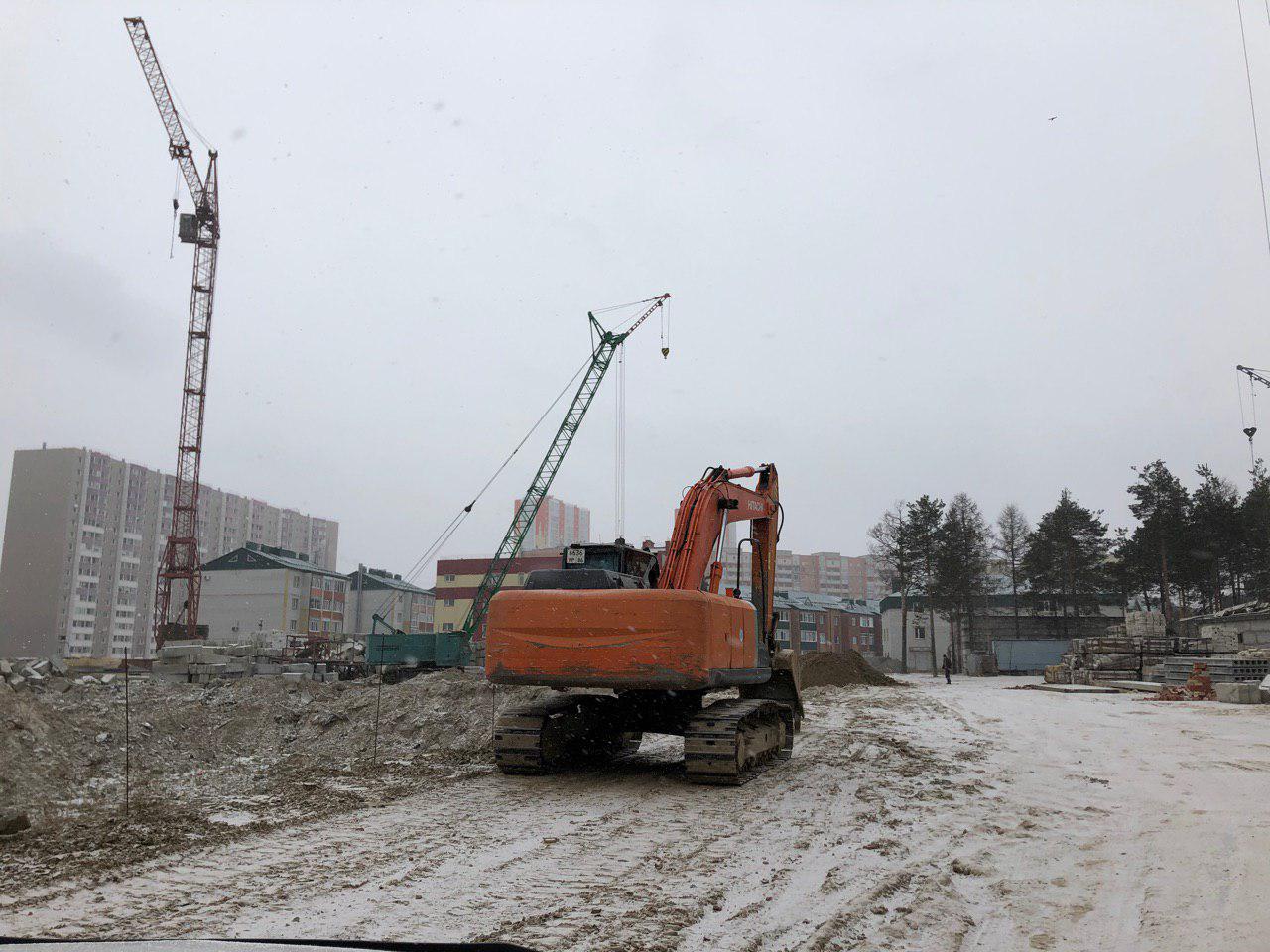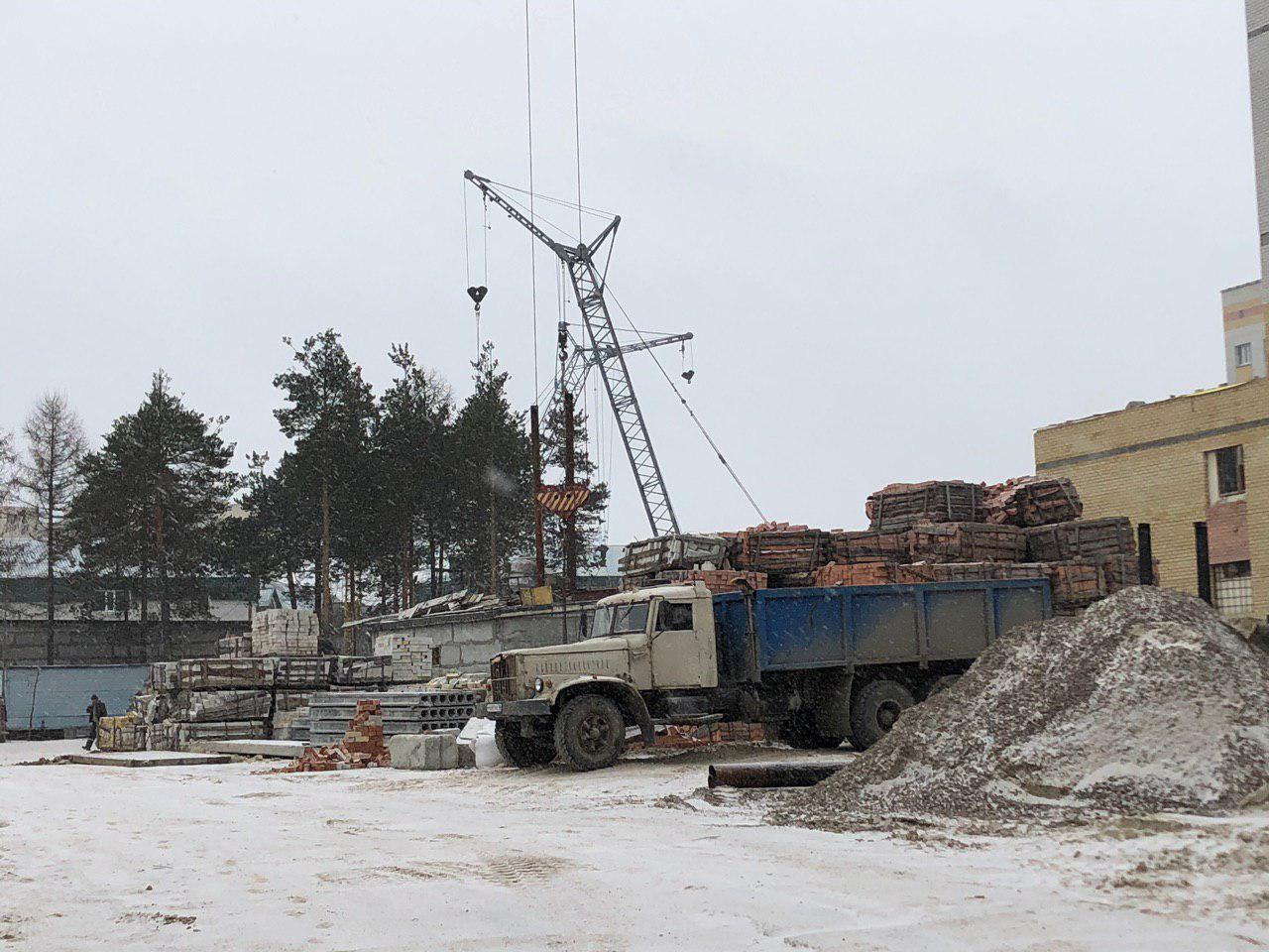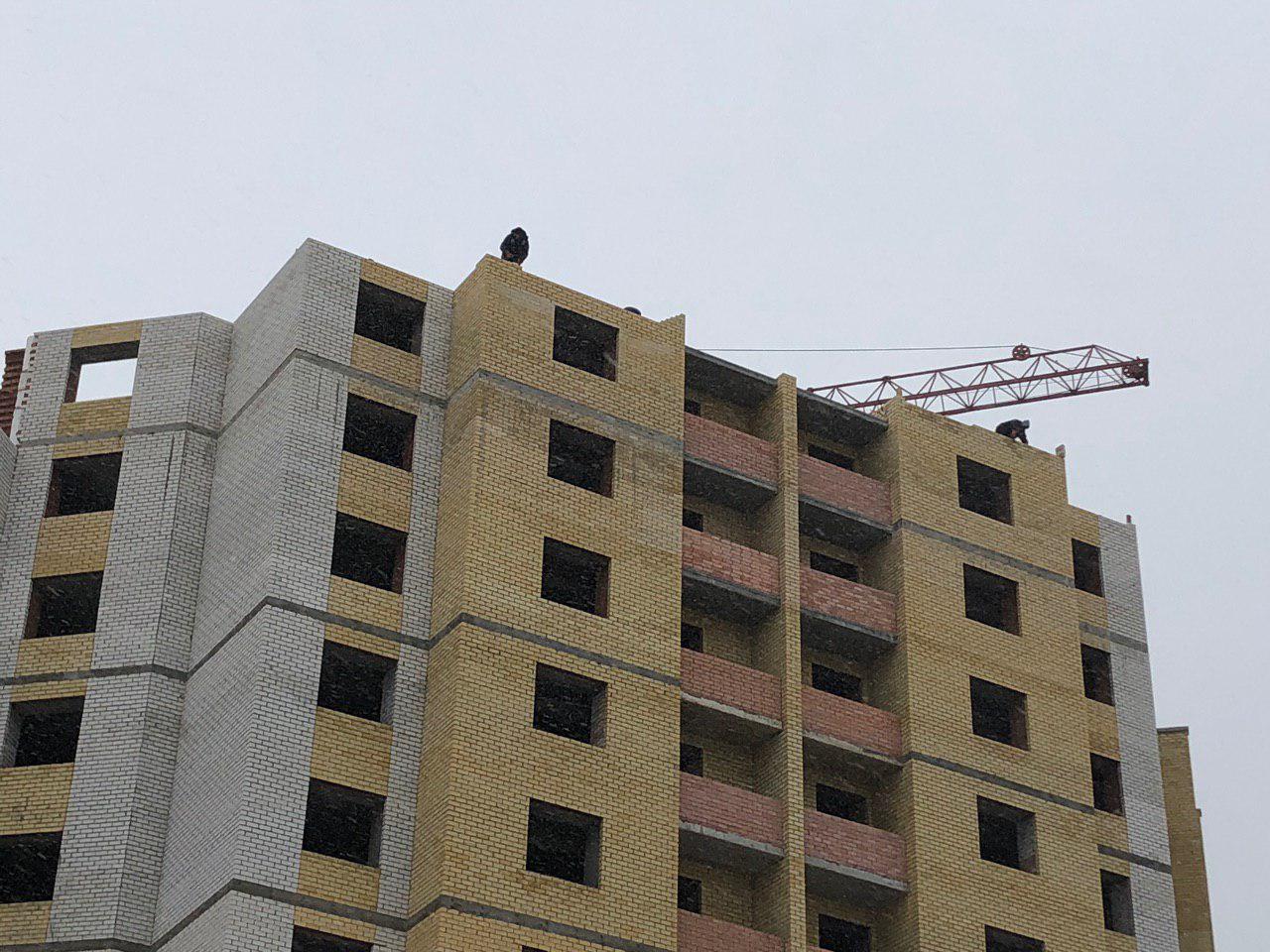 Ведется кладка ограждающих конструкций 9-го этажа секции 8 многоквартирного жилого дома и перегородок. Ведутся работы на кровле. Работают 2 кран, бульдозер, самосвал.