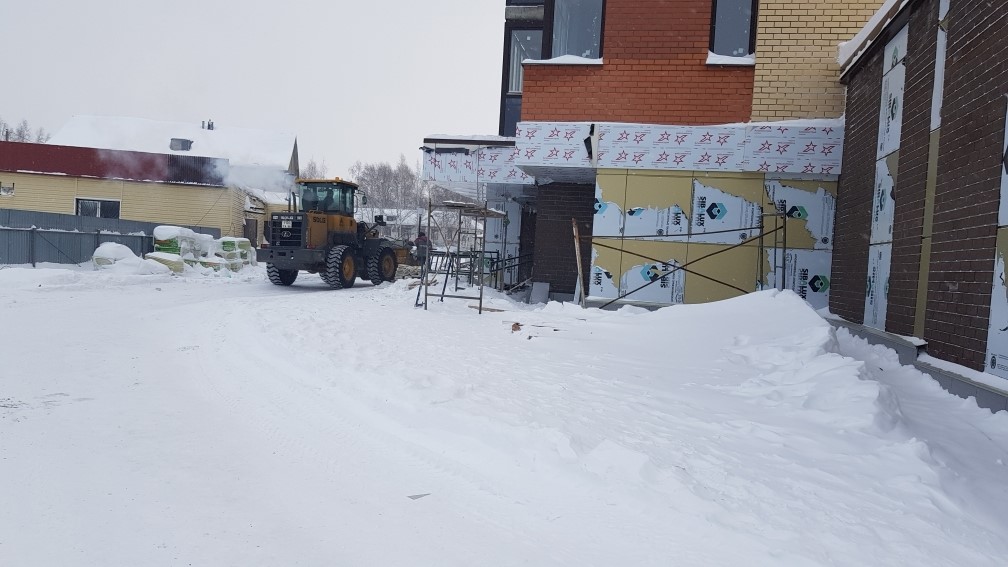 Ведутся работы по облицовке фасадов керамогранитом и композитными панелями, по утеплению фасада парапетами из оцинкованной стали.