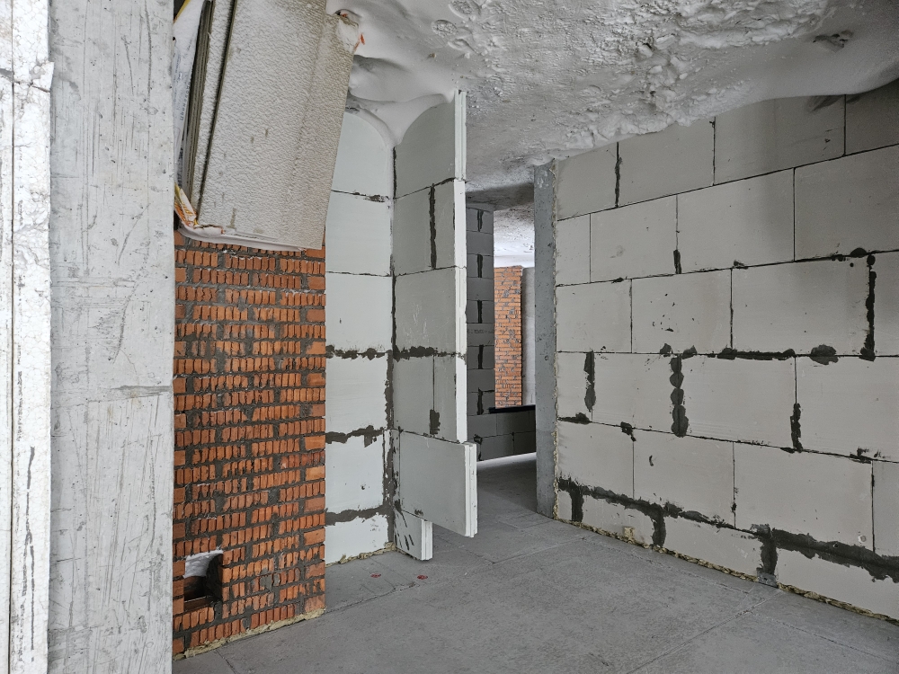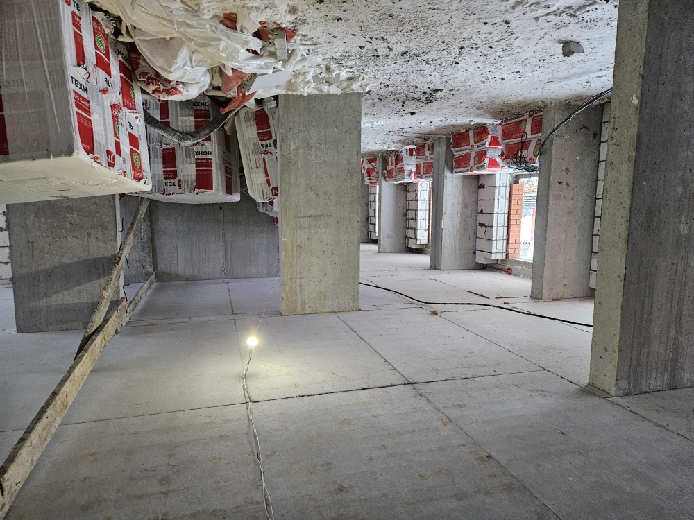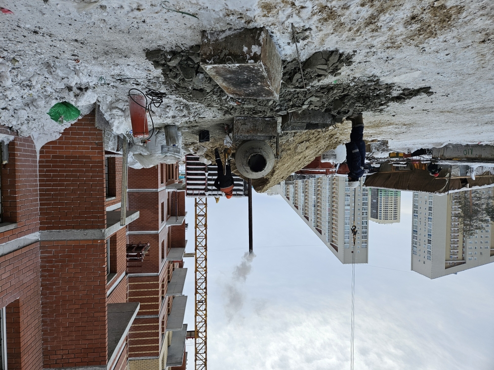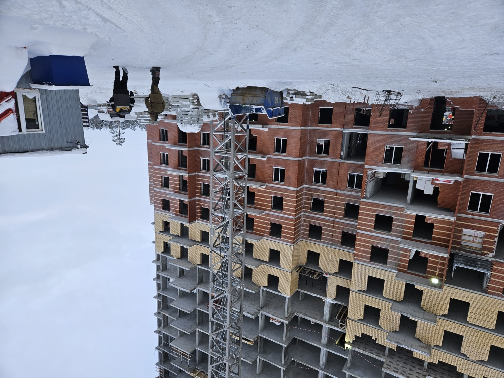 На строительной площадке ведутся строительно-монтажные работы.