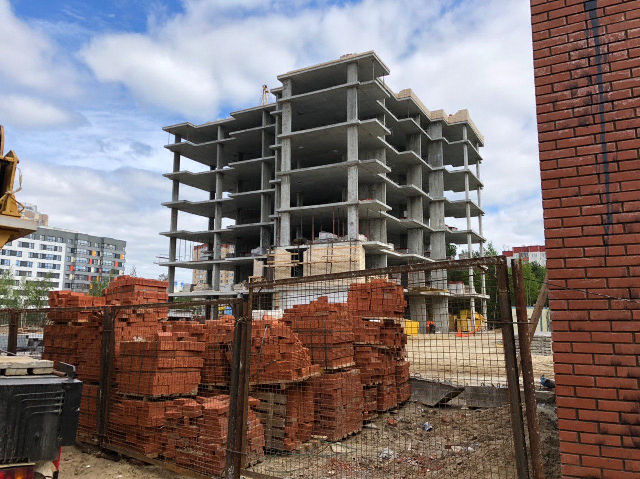Каменщиками в количестве 3 человек начата кладка ограждающих конструкций 8 этажа.